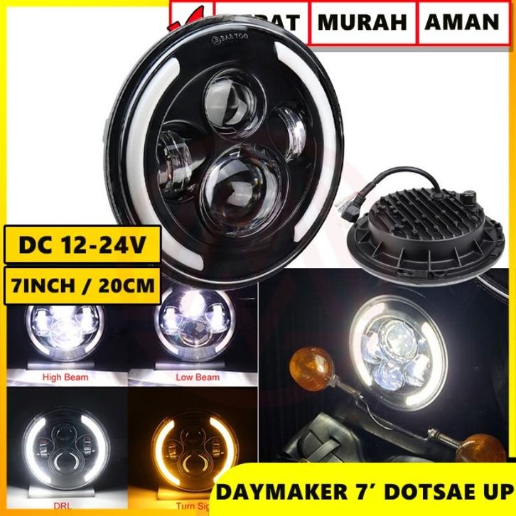 Lampu Daymaker LED 7 inch 4 Mata Lensa 2 senja stengahWarna High/Low