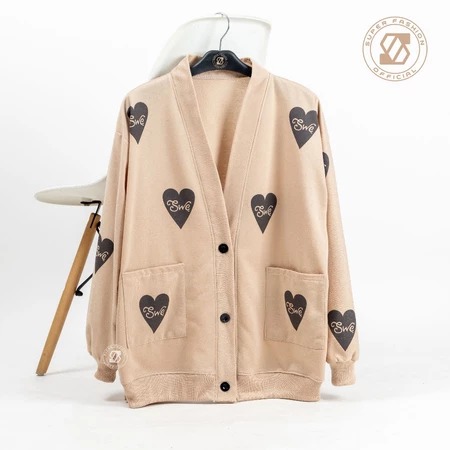 SWE LOVE Cardigan Wanita Korean Style Full Print Kardigan Kancing & Bersaku Remaja Dewasa