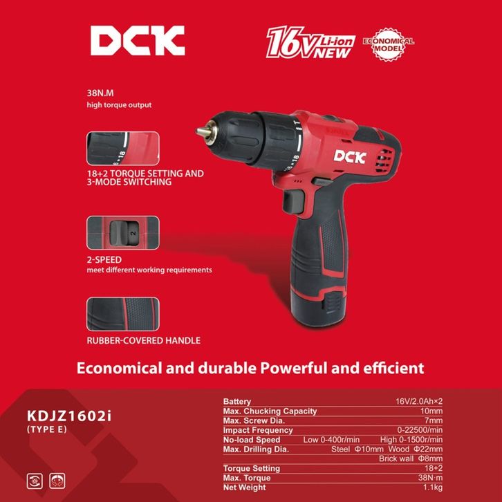 PROMO DCK KDJZ1602iE Bor Cordless Driver / Hammer Drill Baterai 16v