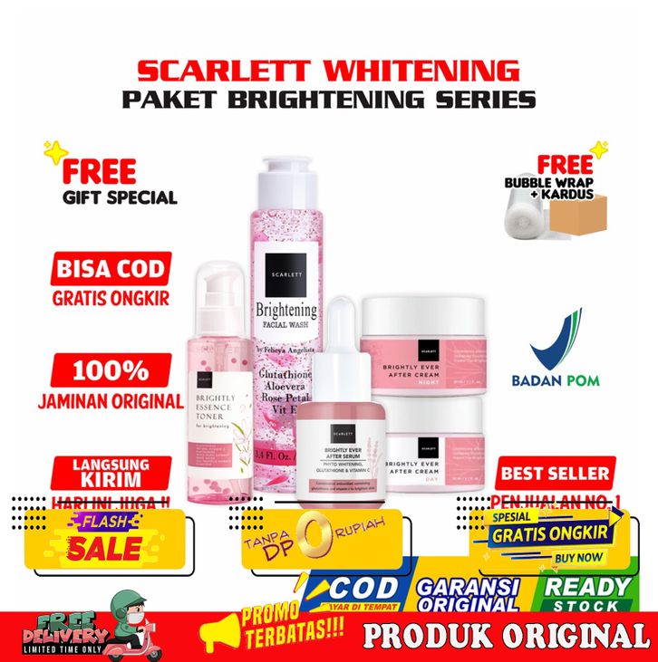 BAGUS 100% SCARLETT WHITENING PAKET BRIGHTENING LENGKAP SERIES SERUM BRIGHTLY EVER AFTER CREAM RESMI BPOM ORIGINAL