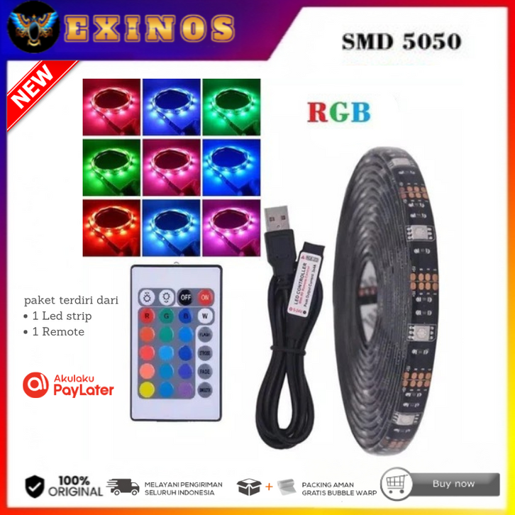 Lampu Strip LED Colok 2m/3m/5m USB / Power Bank RGB Untuk Dekorasi Rumah Plus Remote