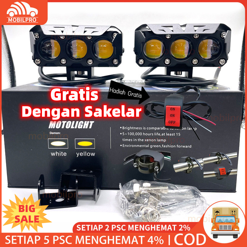 Lampu tembak LED Laser D2 D3 transformer 3 mata SQL 3 mata lensa putihkuning