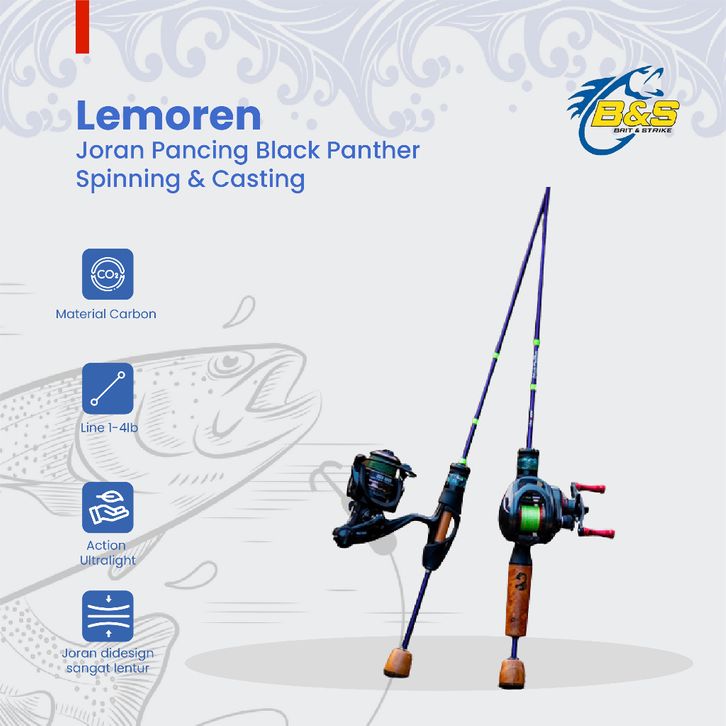 Joran Ultralight Lemoren BLACK PANTHER 1-4lb Joran Pancing Spinning & Casting lure 1-5g Tidak Termasuk Reel JP012