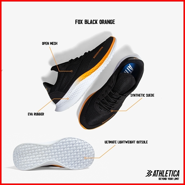 Athletica - Fox Black Orange Sepatu Olahraga Pria Wanita Running Jogging Ringan