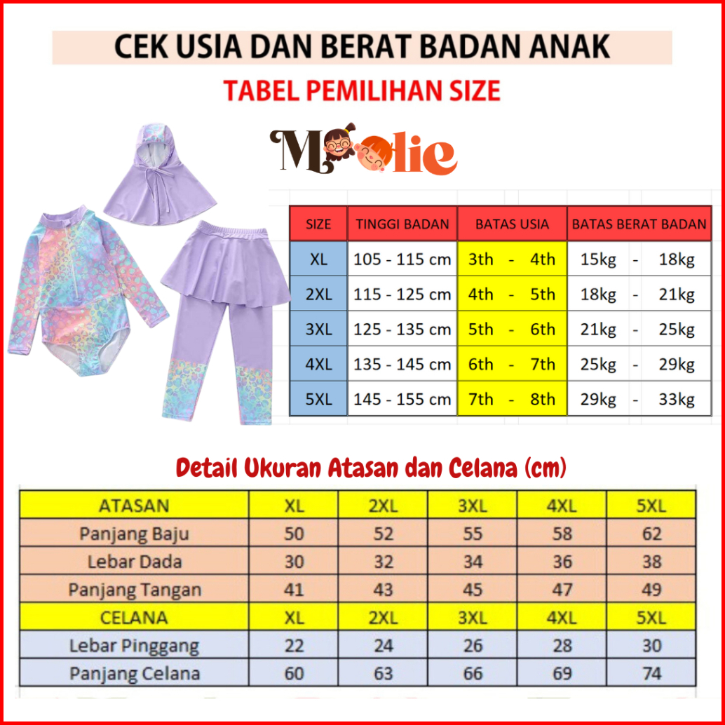 Mo32 Baju Renang Anak Perempuan Jilbab Hijab Muslimah