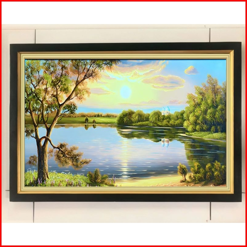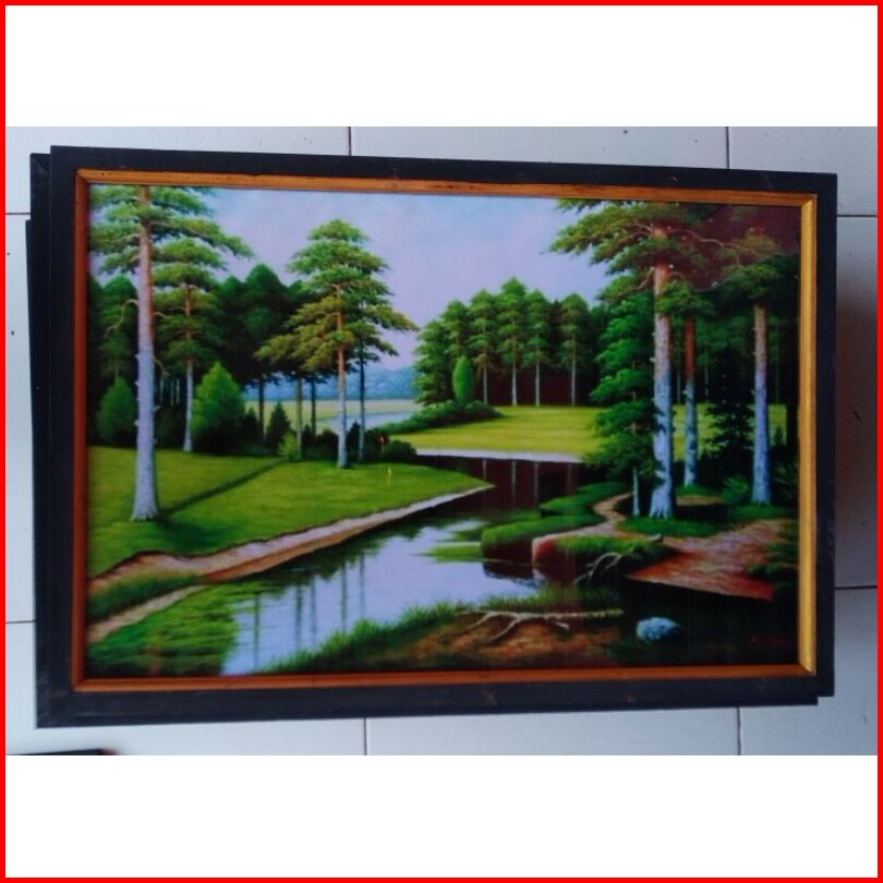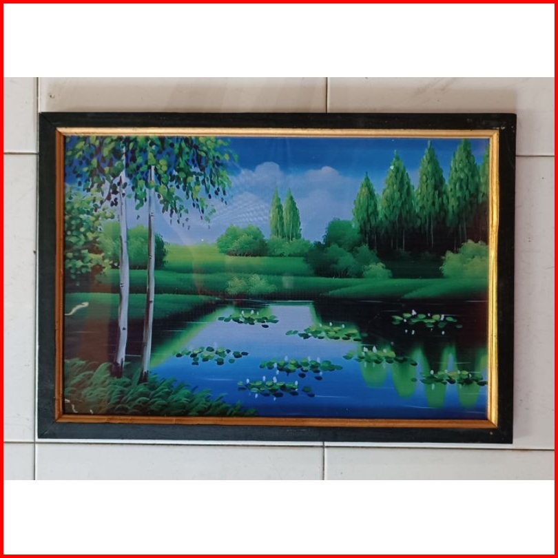 Lukisan Cetak Pemandangan Danau Yg Indah Plus Bingkai Ukuran 65 45