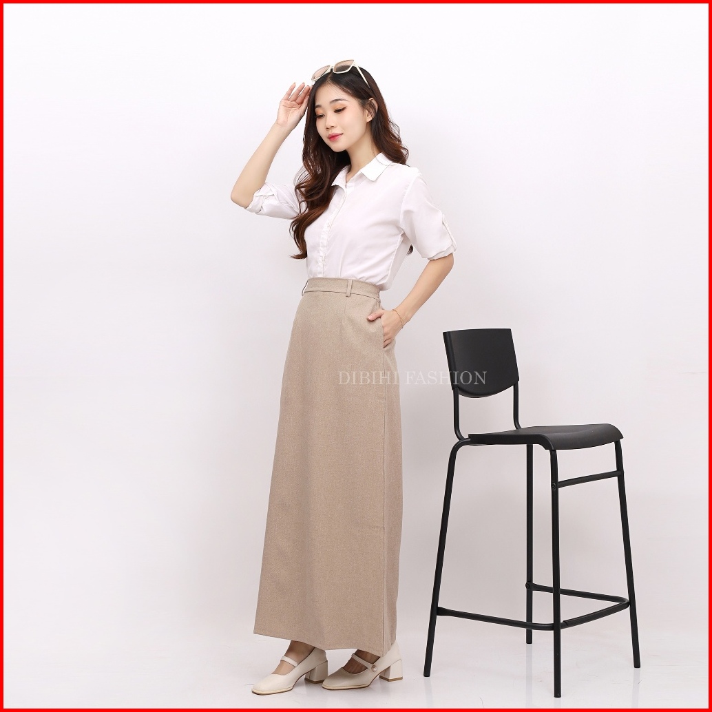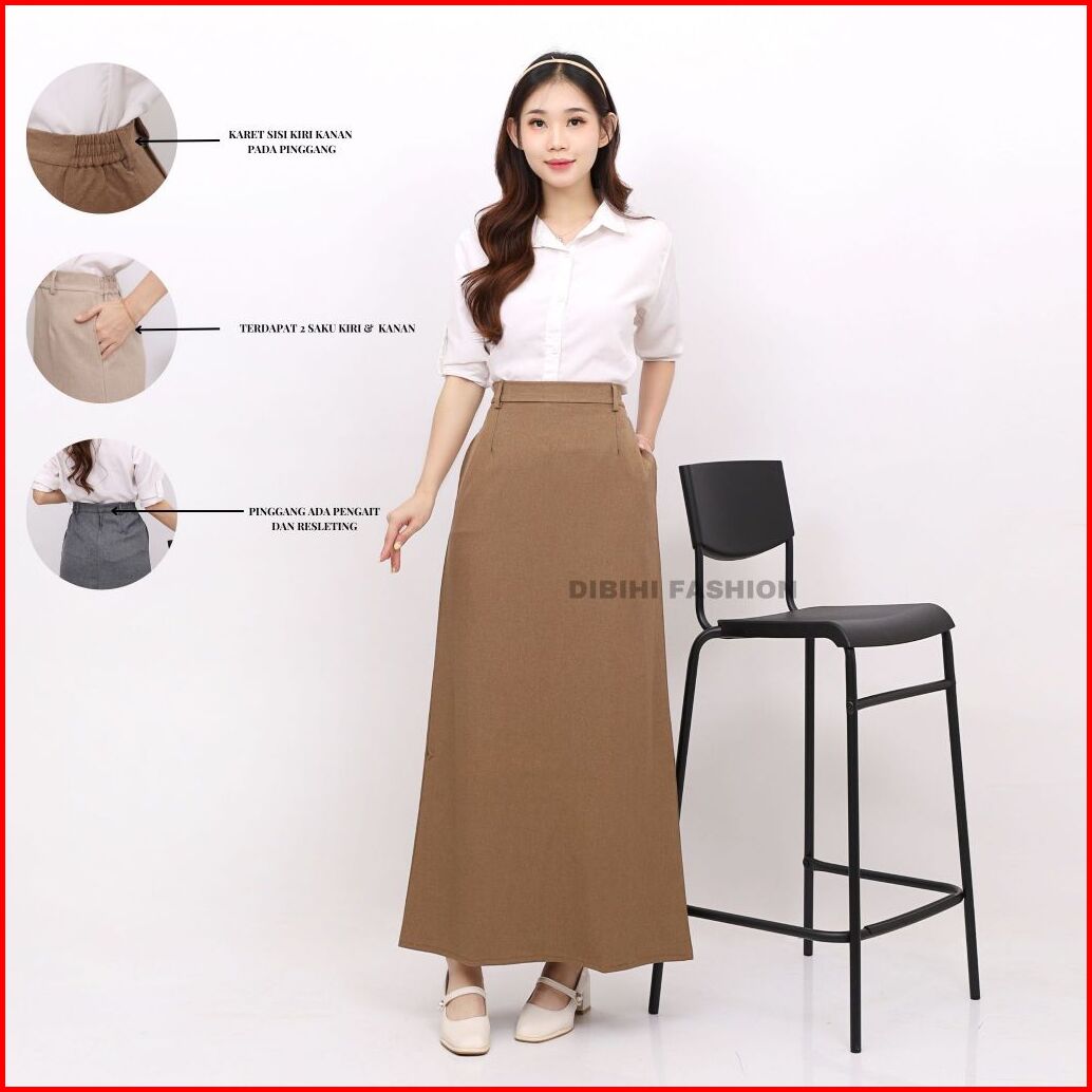 Dibihi Rok Kerja Model Line A Panjang Wanita Bahan Formal Stretch Import Premium