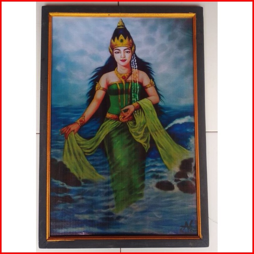 Hiasan Dinding Lukisan Cetak Ratu Pantai Selatan Kebaya Hijau Plus Bingkai Ukuran 65 45