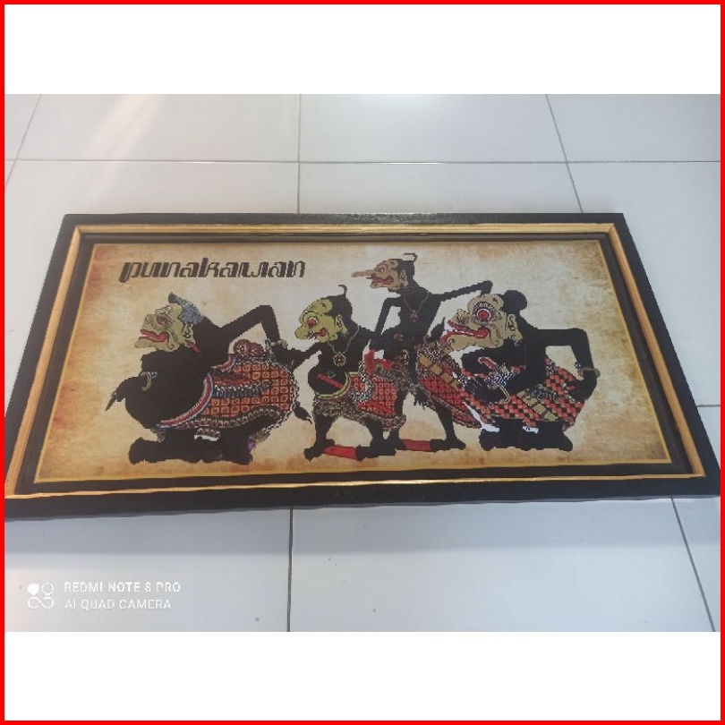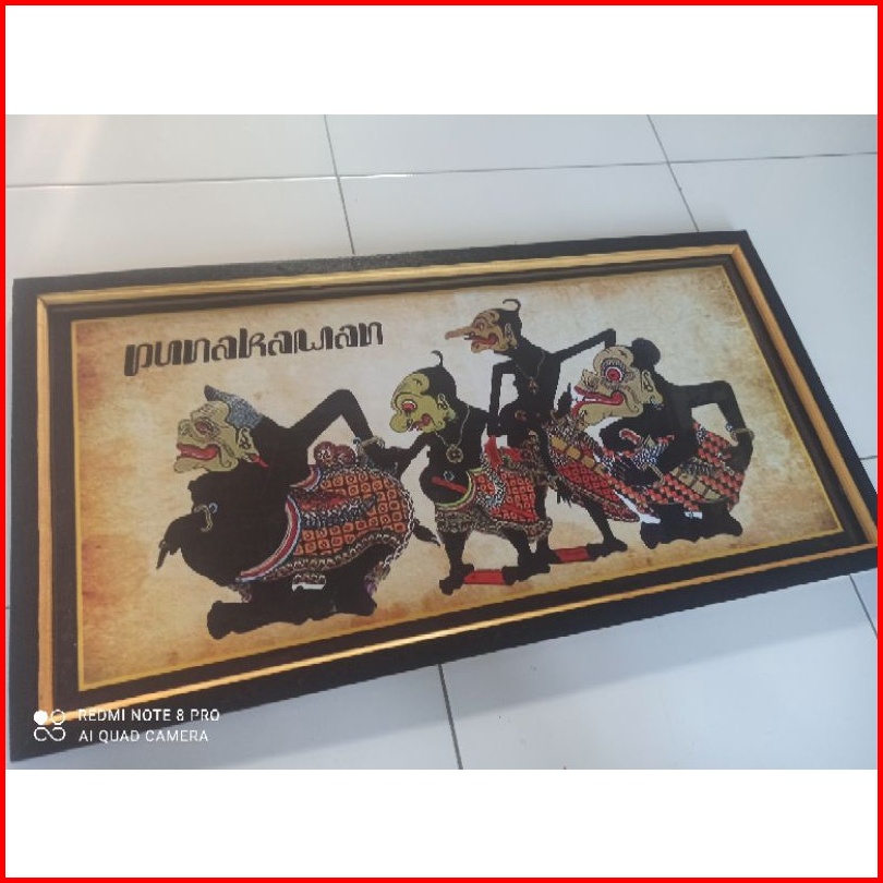 Hiasan Dinding Cetak Gambar Lukisan Pewayangan Punakawan Plus Bingkai Ukuran 100x50cm