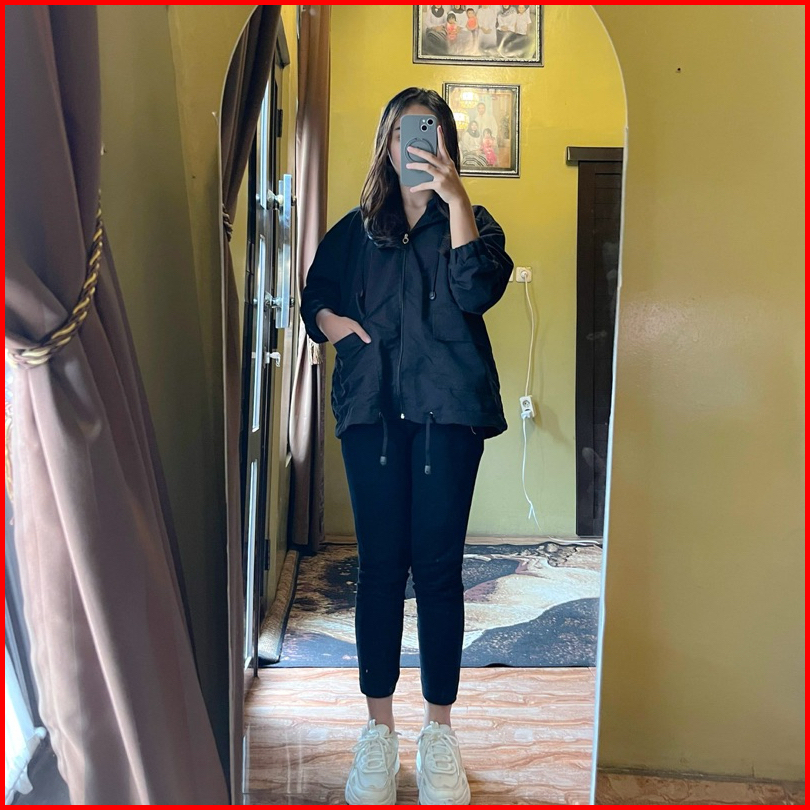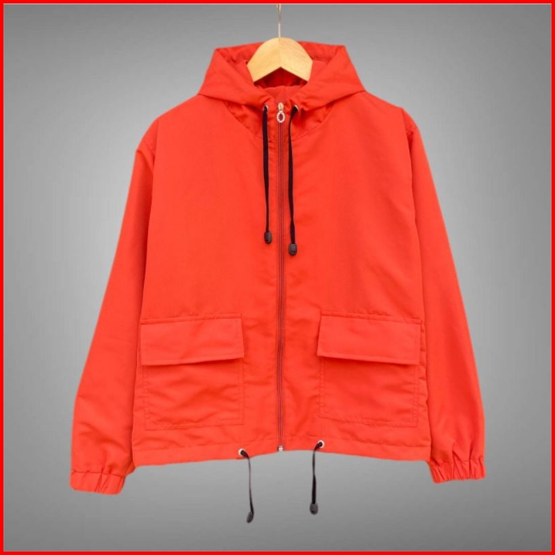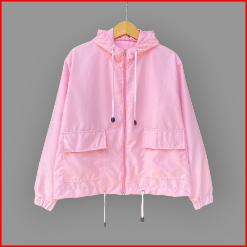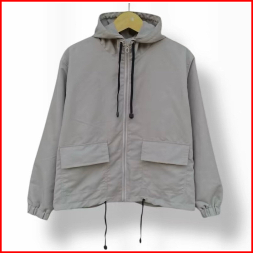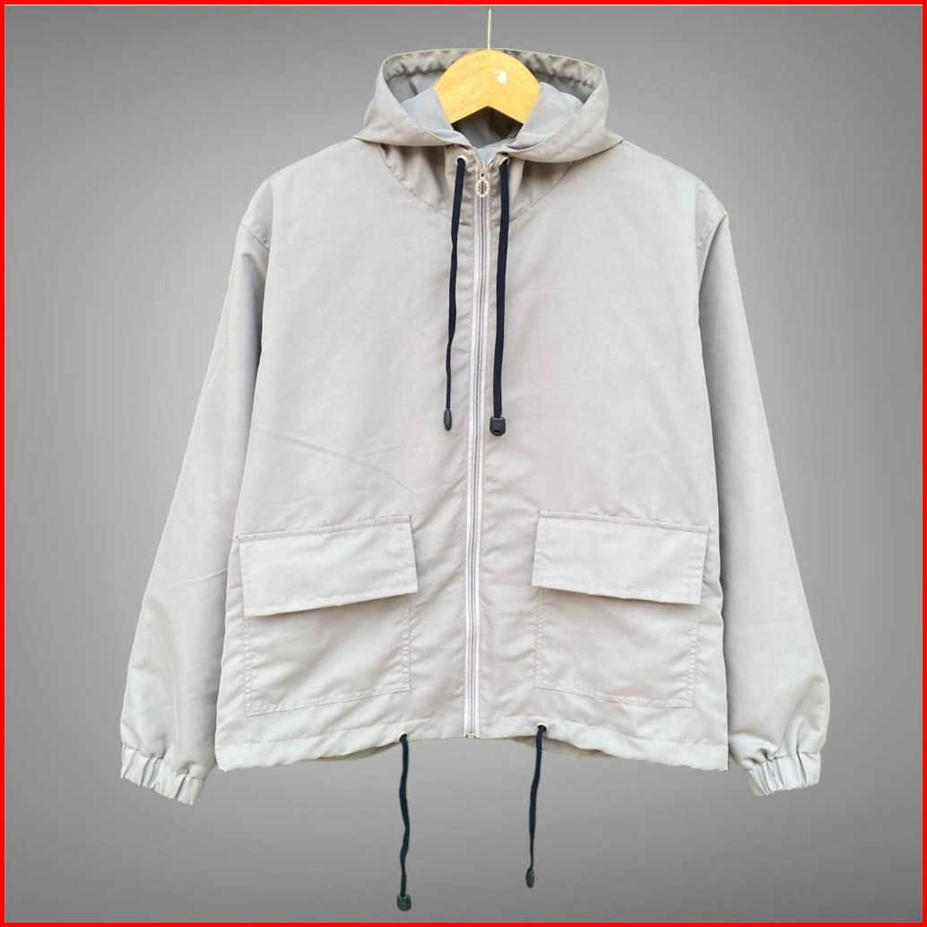 Jaket Parasut Wanita Dewasa Windbreaker Terbaru Abu Muda