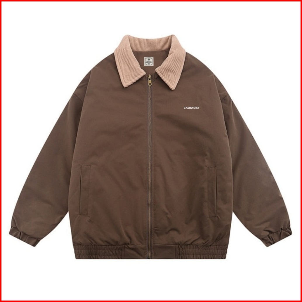 Tracktop Jacket Vintage Canvas Cotton Collar Corduroy Mantel Pria