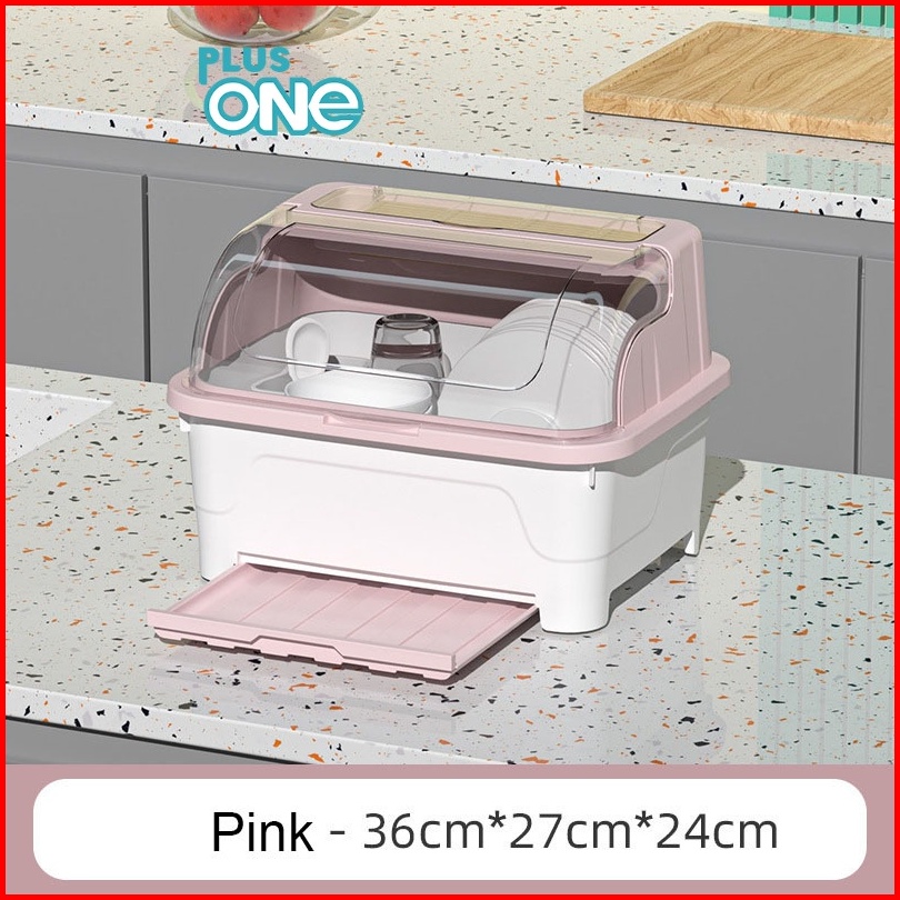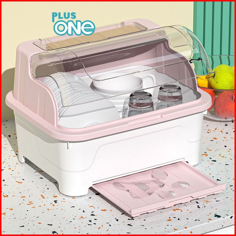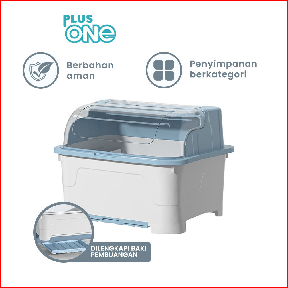 Plus One - Rak Piring Plastik Rak Pengering Piring Mangkok Rak Dapur Kotak Penyimpanan -1292