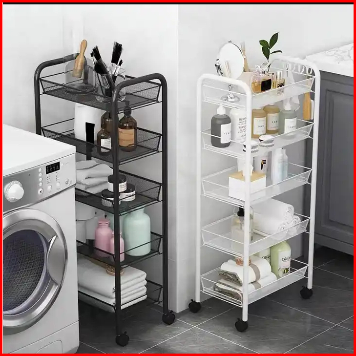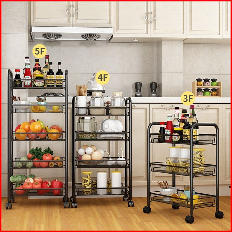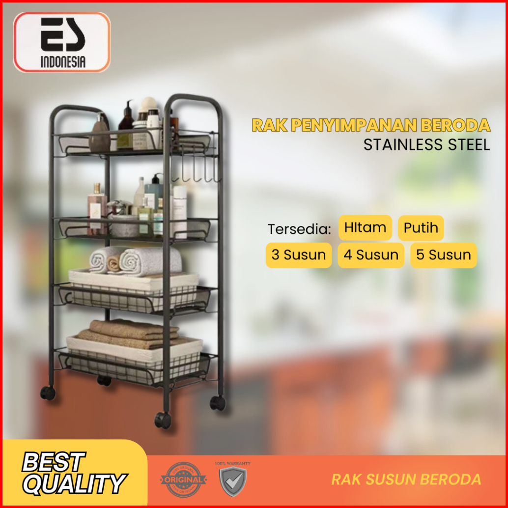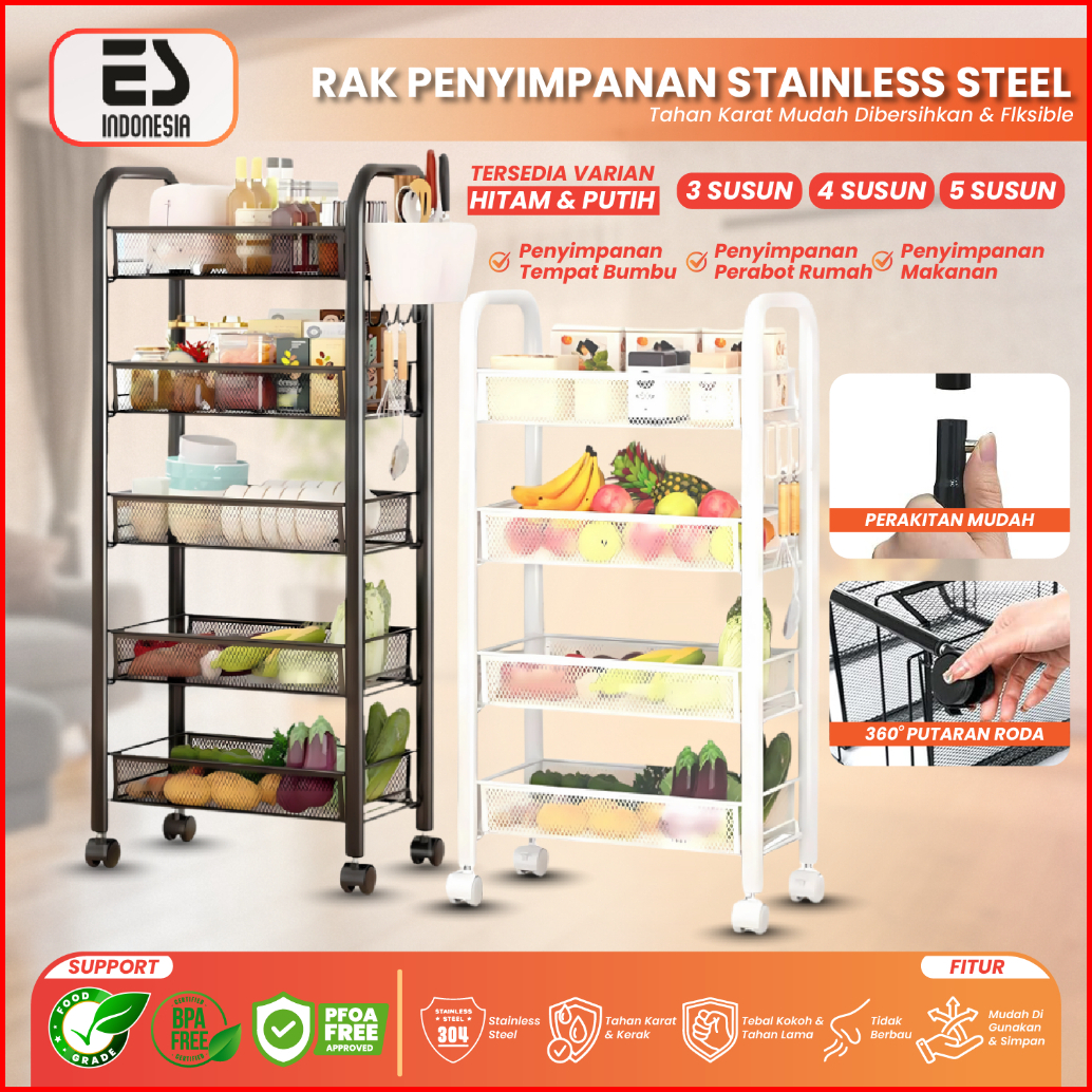 Esindo Rak Susun Roda Troli Stainless Steel Penyimpanan Serbaguna Ruang Tamu Tingkat 3 4 5 Susun