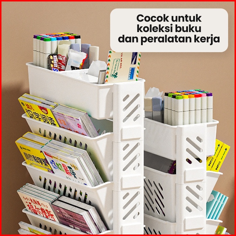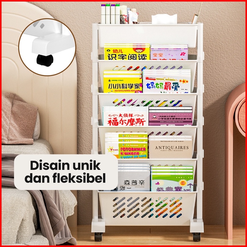 Dejavu Rak Buku Roda Troli Rak Susun Dokumen Penyimpanan Alat Kantor Dekstop Organizer Tempat Hsb624