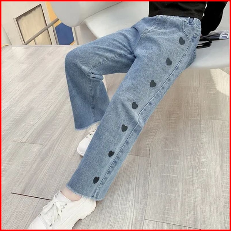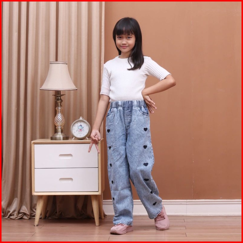 Jeans Anak Kulot Jeans Anak Perempuan Tangung Celana Jeans Anak Kekinian Motif Bordil Love