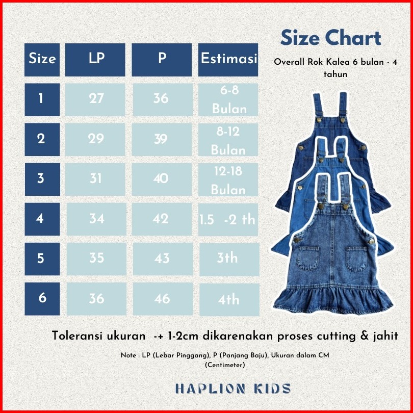 Haplion Kidswear Overall Rok Jeans Kalea Anak Perempuan 6 Bulan - 4 Tahun