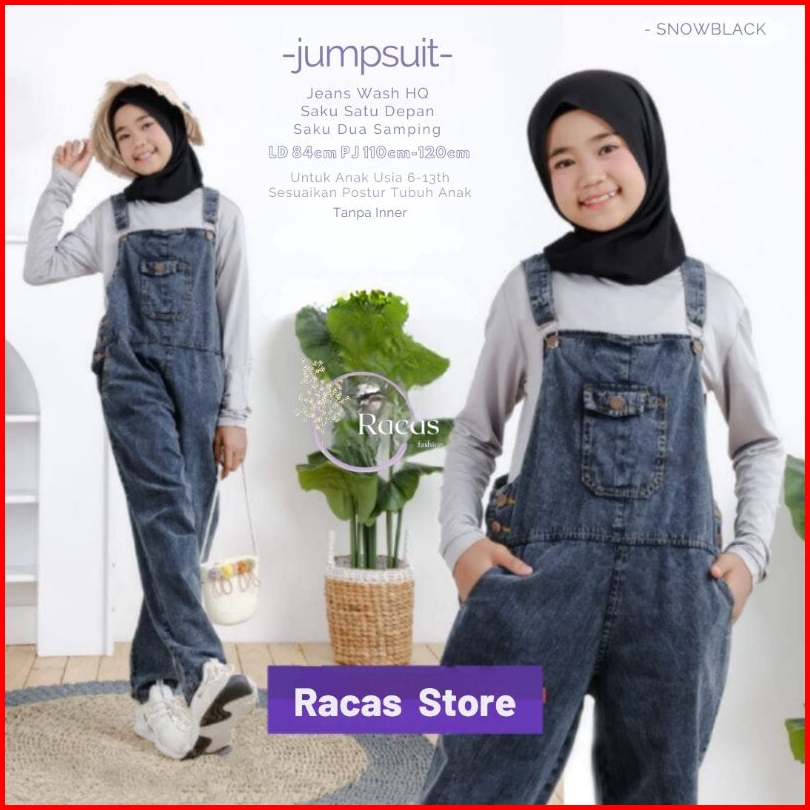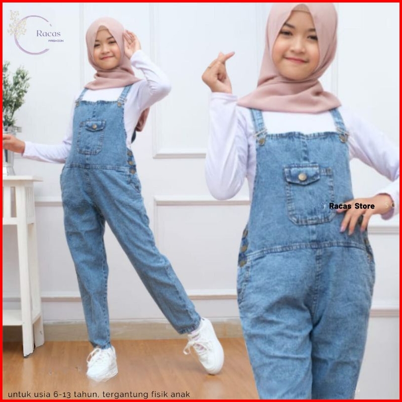 Overall Anak Perempuan Usia 4-13 Tahun Jumpsuit Jeans Celana Kodok Terbaru