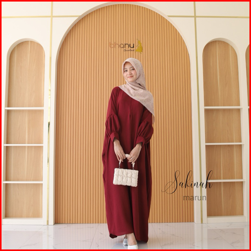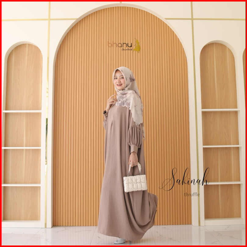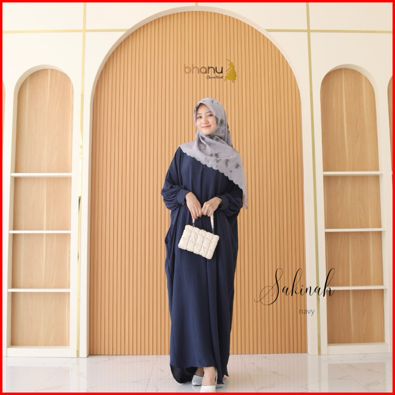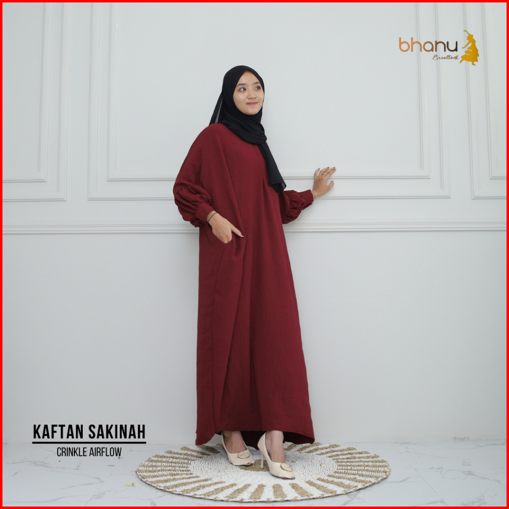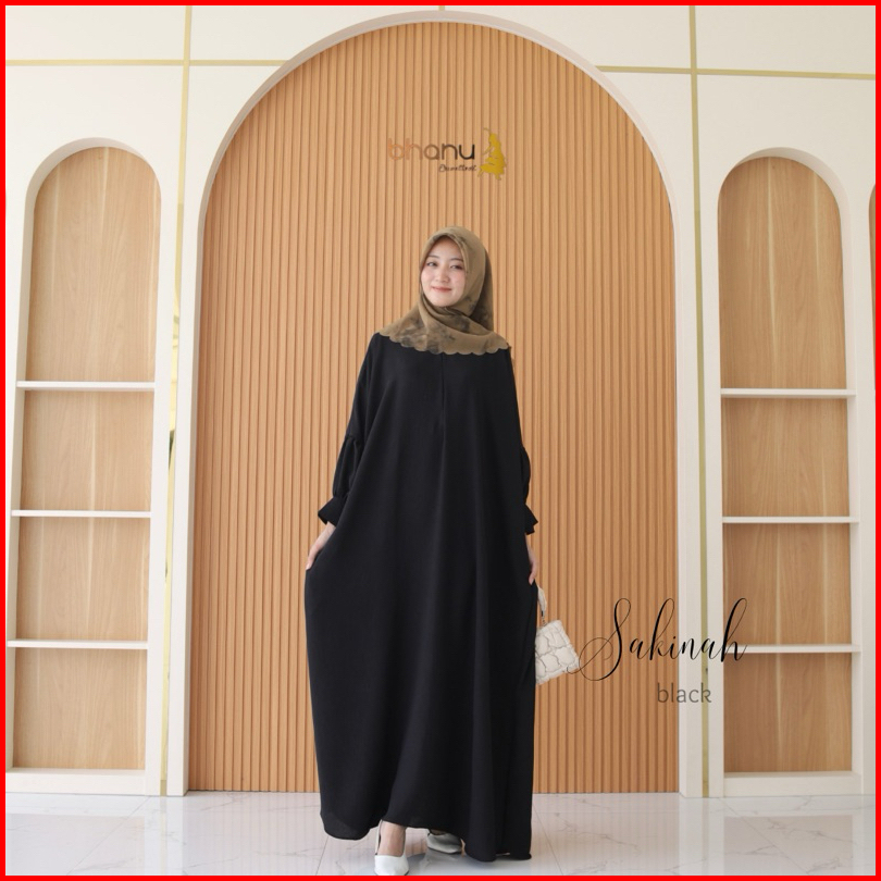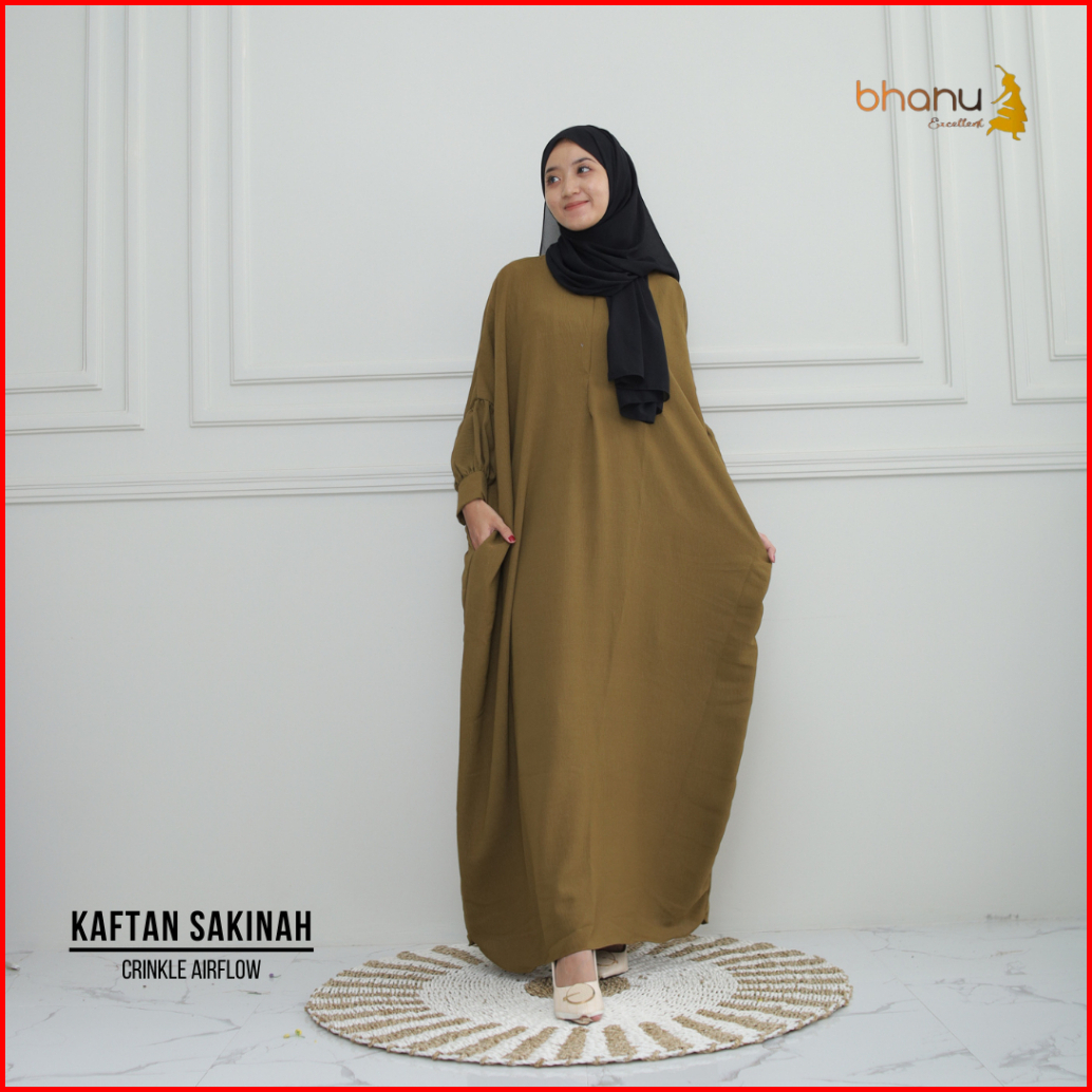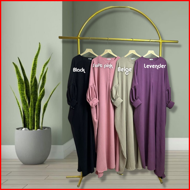 Ifabhanu Kaftan Sakinah Bahan Cringkle Airflow Polos Adem Nyaman Busui Resleting Depan