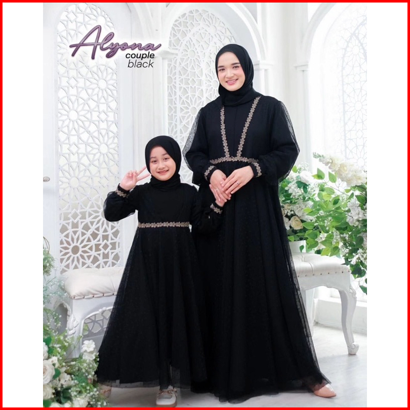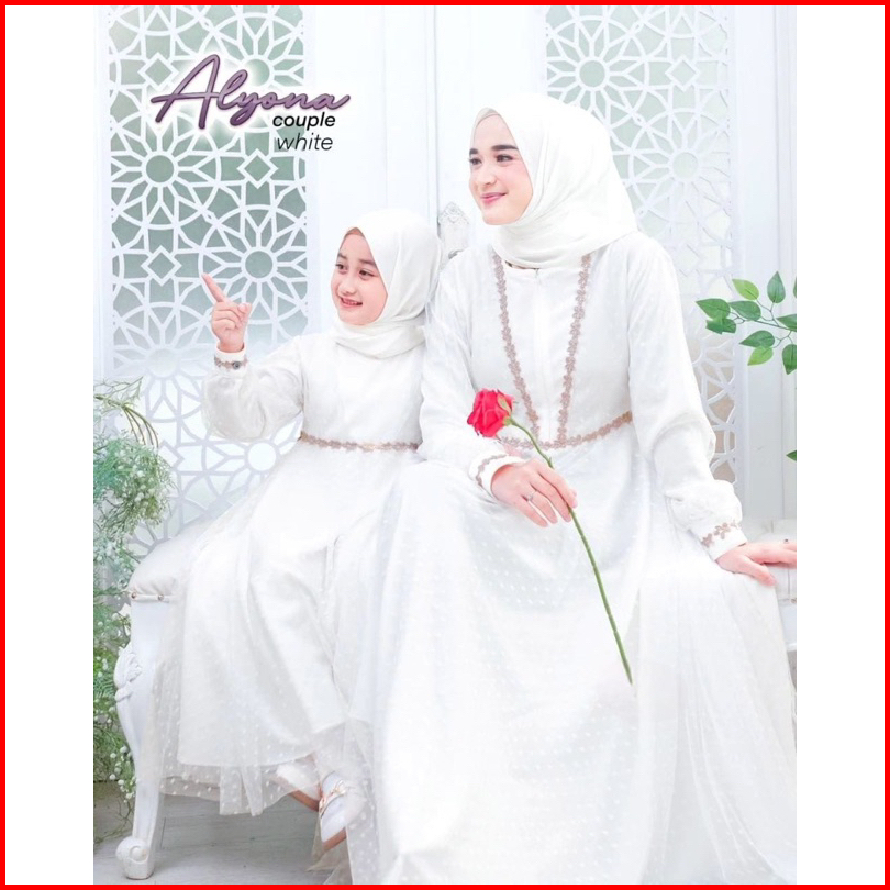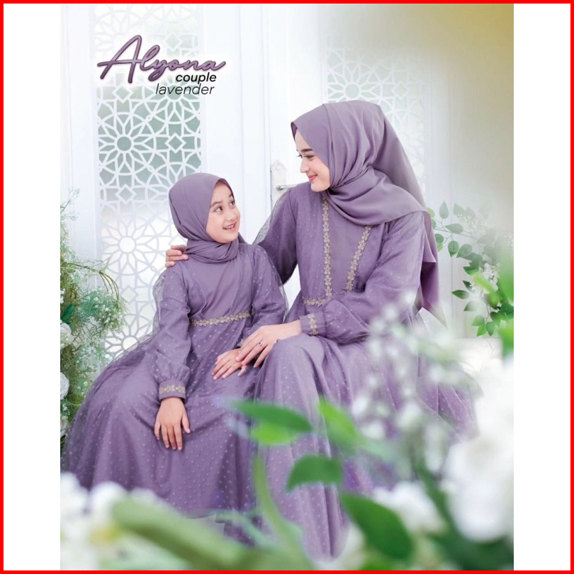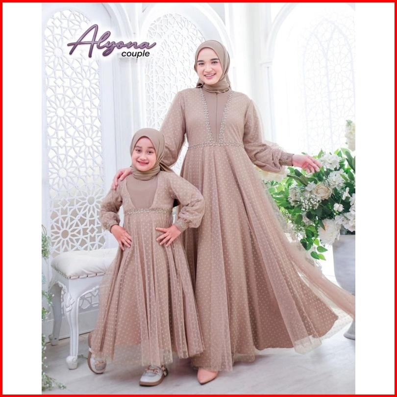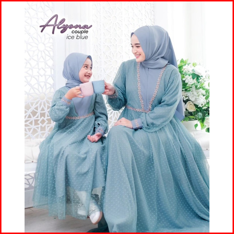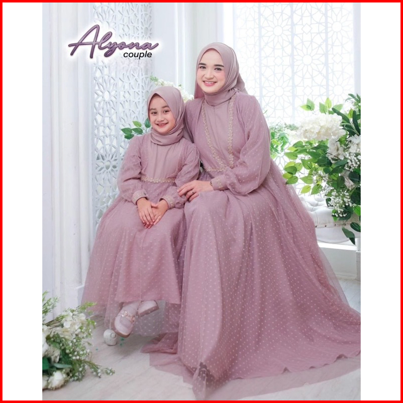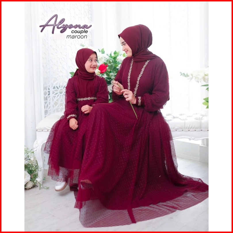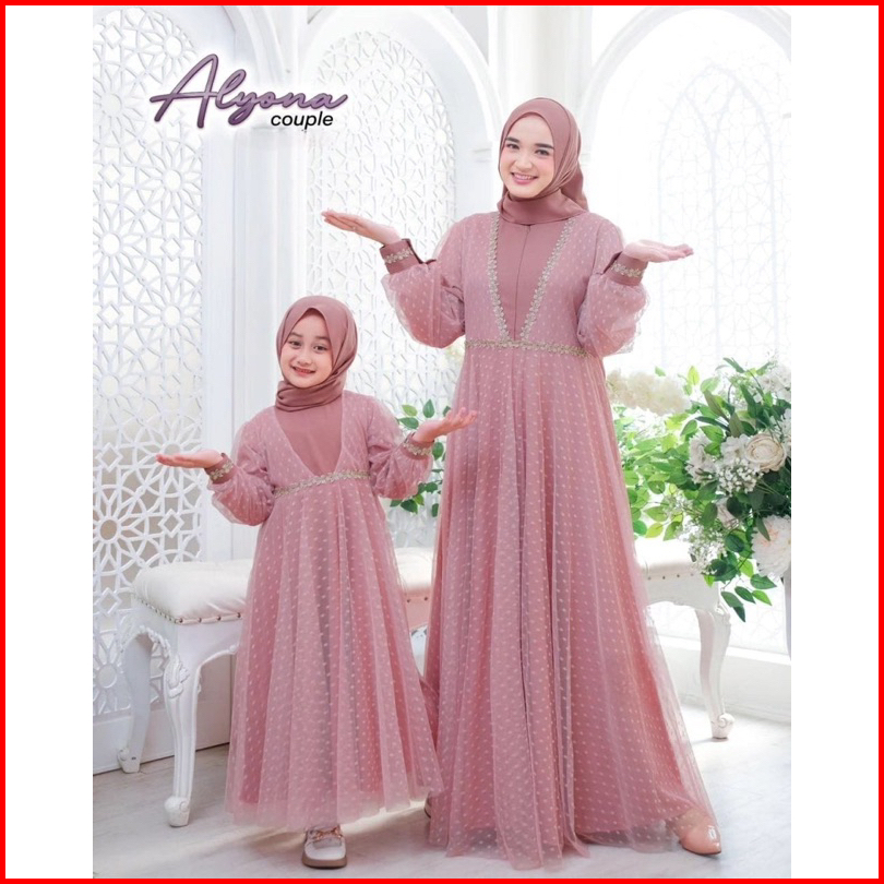 H C Fashion Alyona Dress Gamis Couple Mom And Kids Bahan Syakilla Mix Tile Aplikasi Renda Dress Couple Ibu Dan Anak Pere