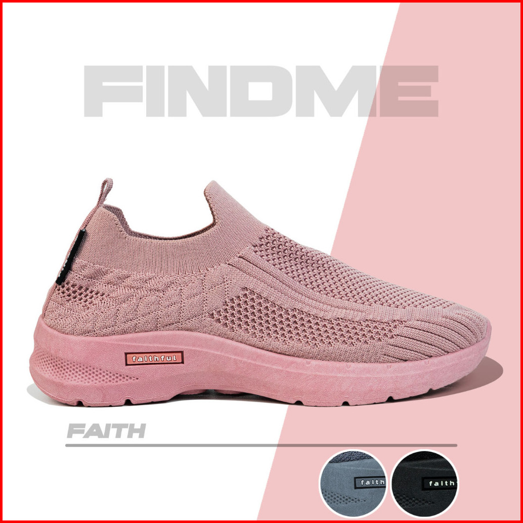 Findme 36-45 Faith Sepatu Sneakers Wanita Kekinian Praktis Simpel Polos Stylish Rajut Model Praktis Keren Sporty Lari Sa