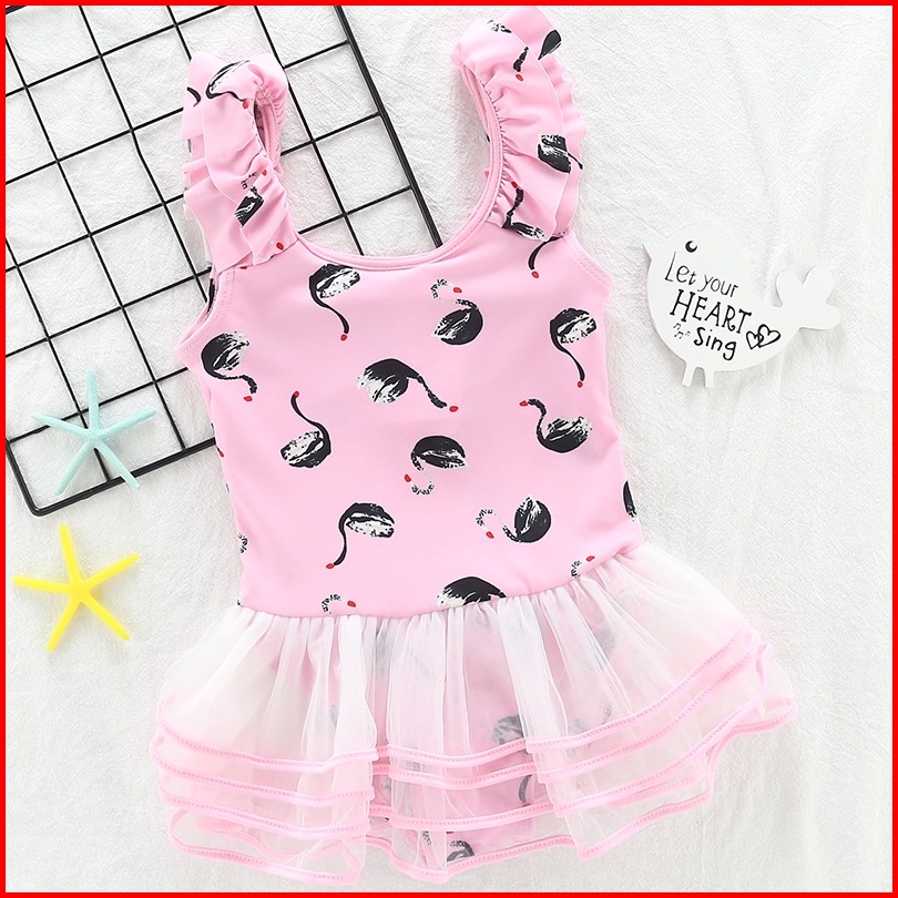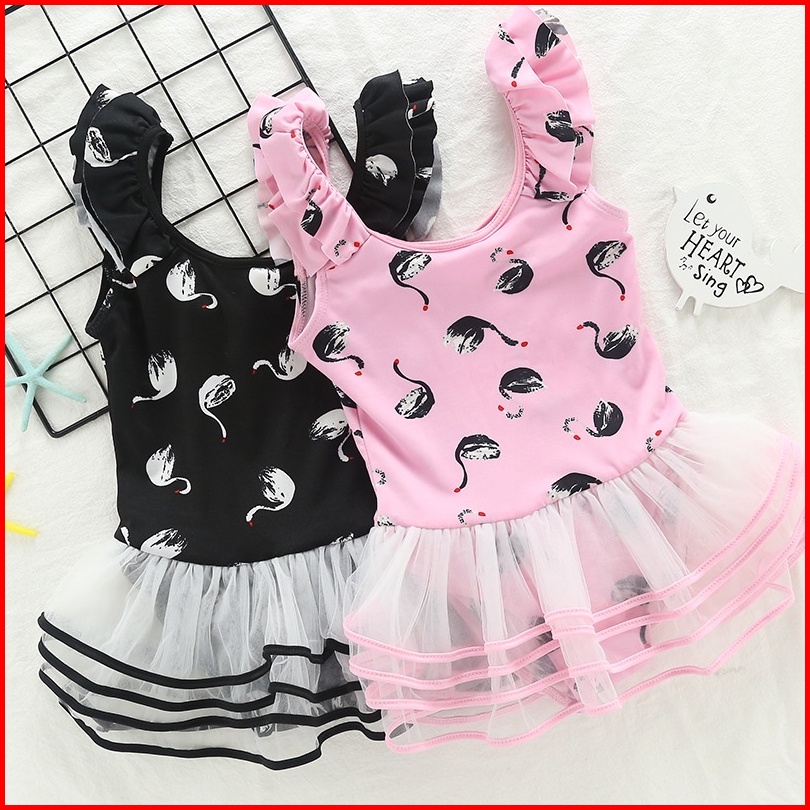 New Baju Renang Anak Perempuan Dengan Tutu Motif Swan