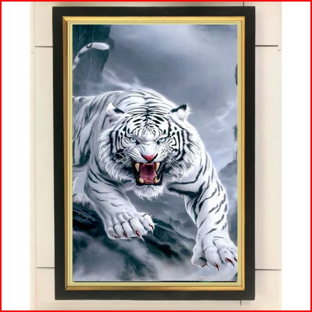 Hiasan Dinding Lukisan Cetak Harimau Putih 3d Plus Bingkai Ukuran 65 45