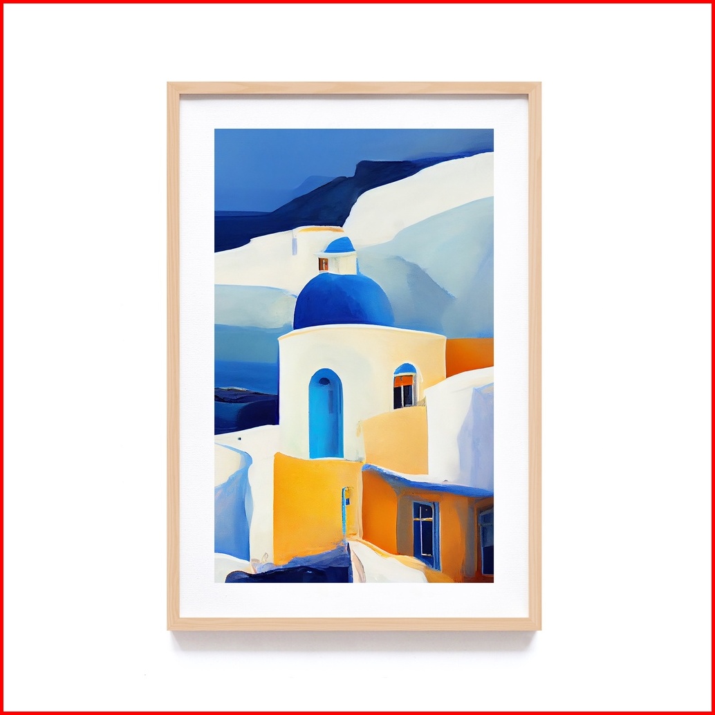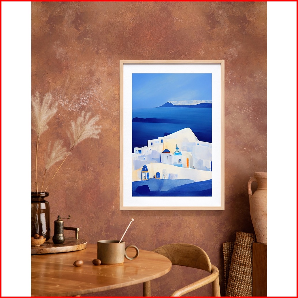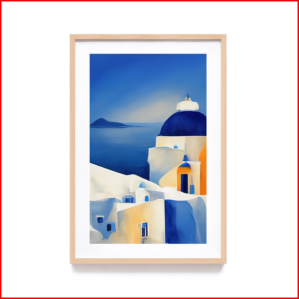 Lukisan Santorini Yunani Background Laut Biru Dan Gunung Wall Art