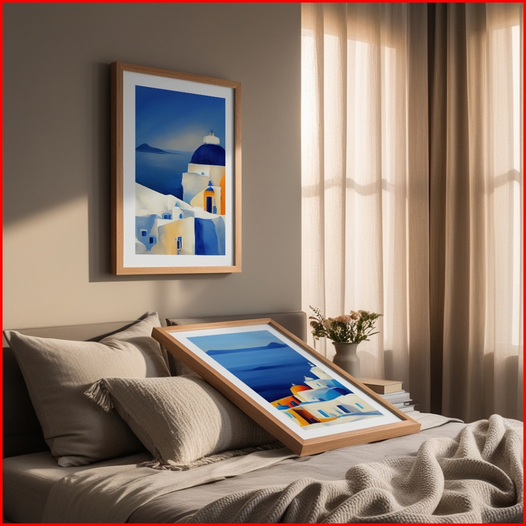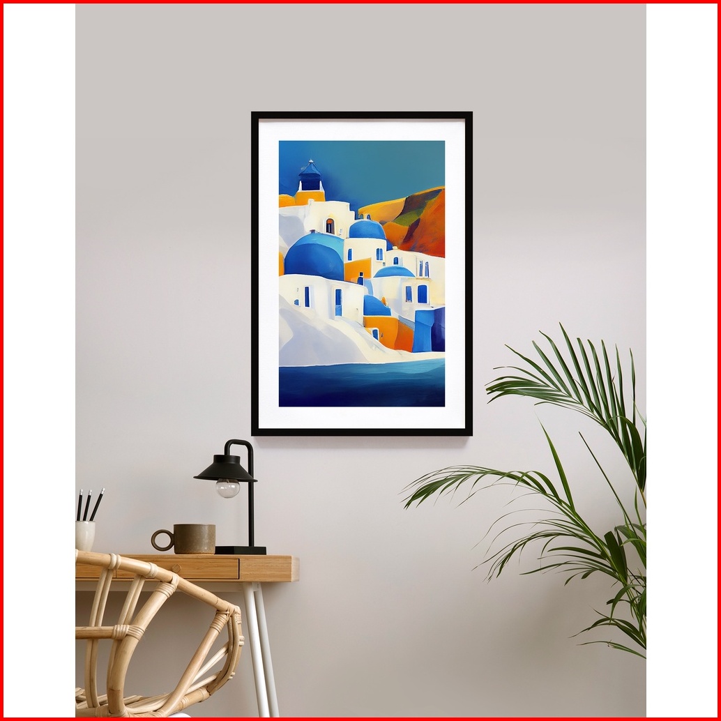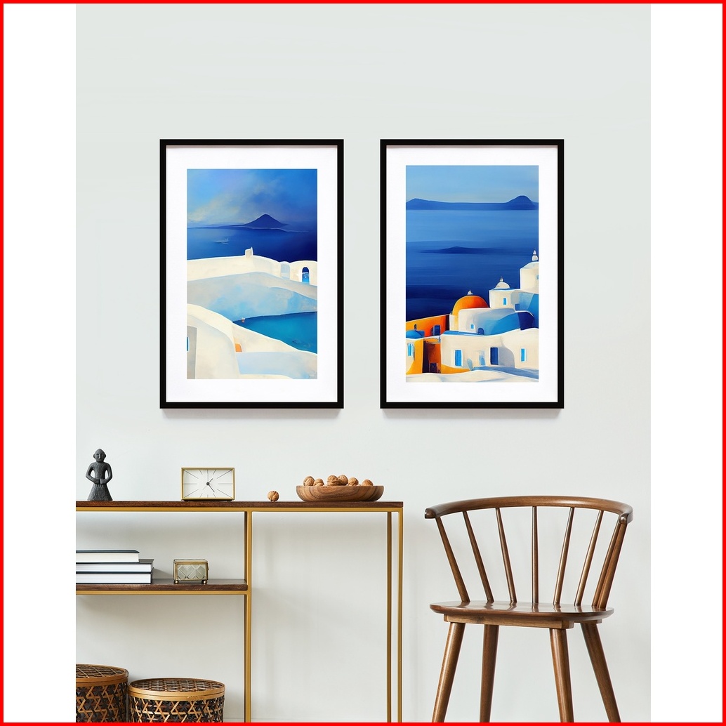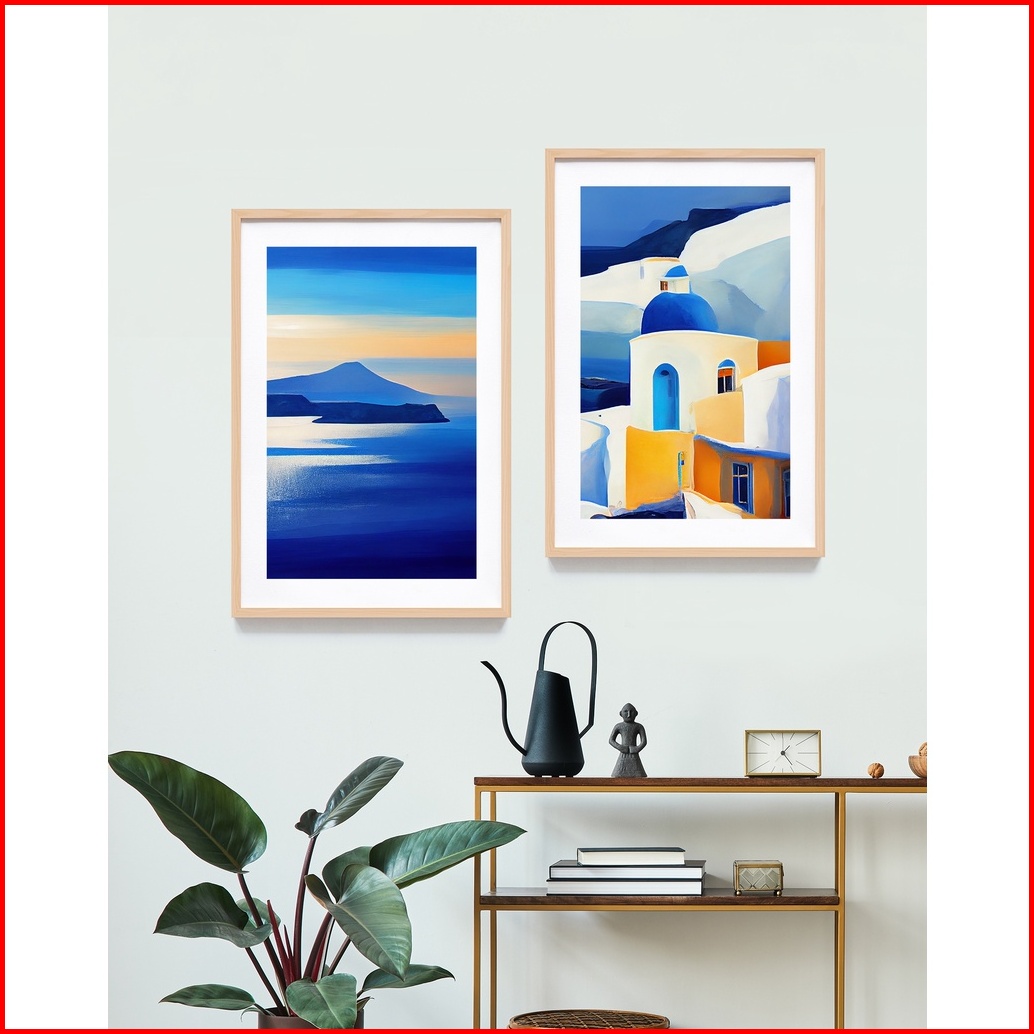 Lukisan Santorini Yunani Background Laut Biru Dan Gunung Wall Art