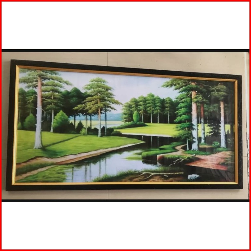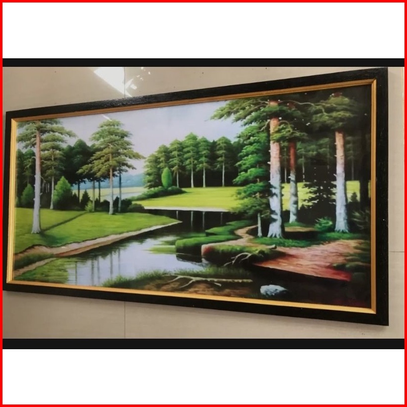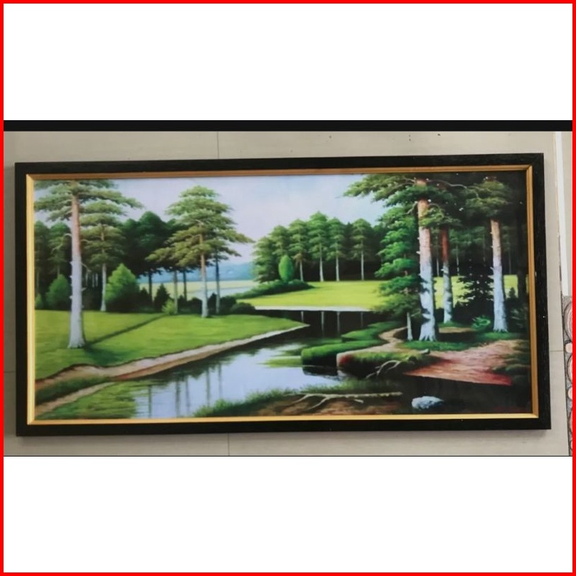 Hiasan Dinding Cetak Gambar Lukisan Pemandangan Sungai Plus Bingkai Ukuran 50x100 Cm