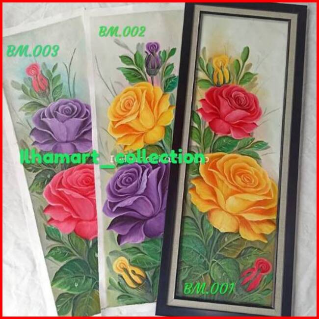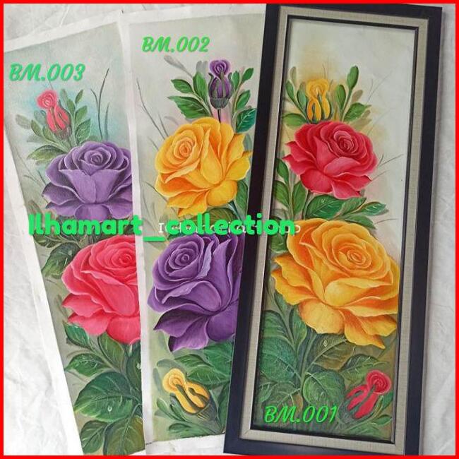 Lukisan Bunga Mawar Bingkai Pigura Ukuran 30cm X 90cm