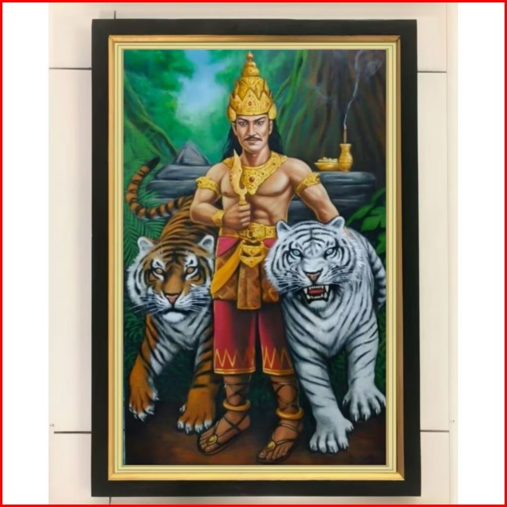 Hiasan Dinding Lukisan Cetak Prabu Siliwangi Dan Kujang Plus Bingkai Ukuran 65 45