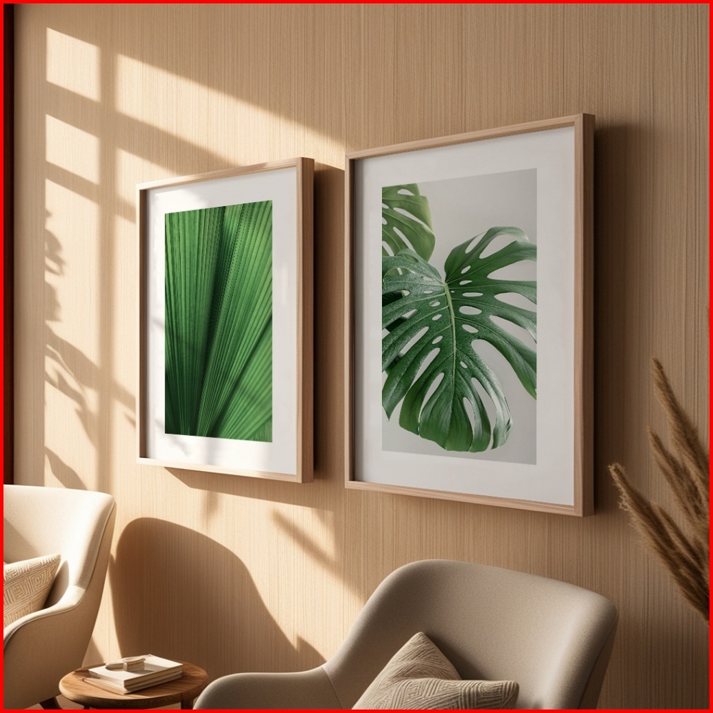 Poster Tropical Frame Kayu Hiasan Dinding Gambar Daun Wall Decor Aesthetic Tema Tanaman Hijau