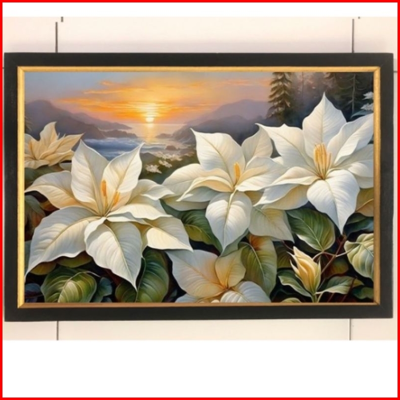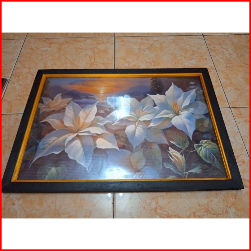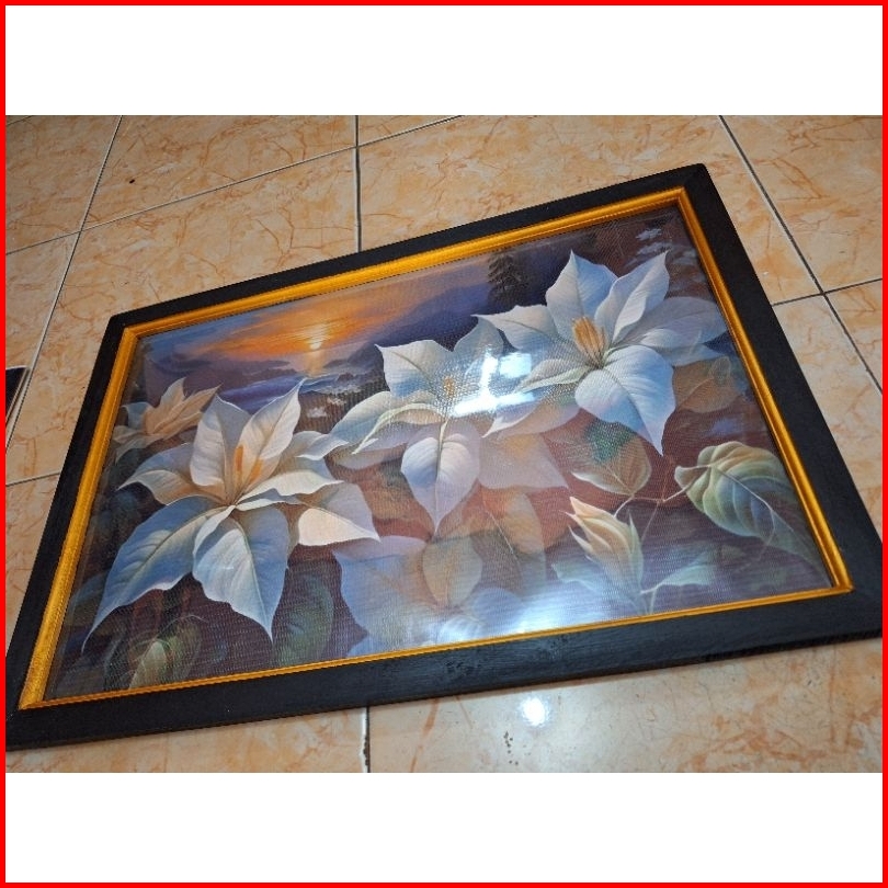 Hiasan Dinding Lukisan Cetak Bunga Putih Indah Mekar Plus Bingkai Uk 45x65cm