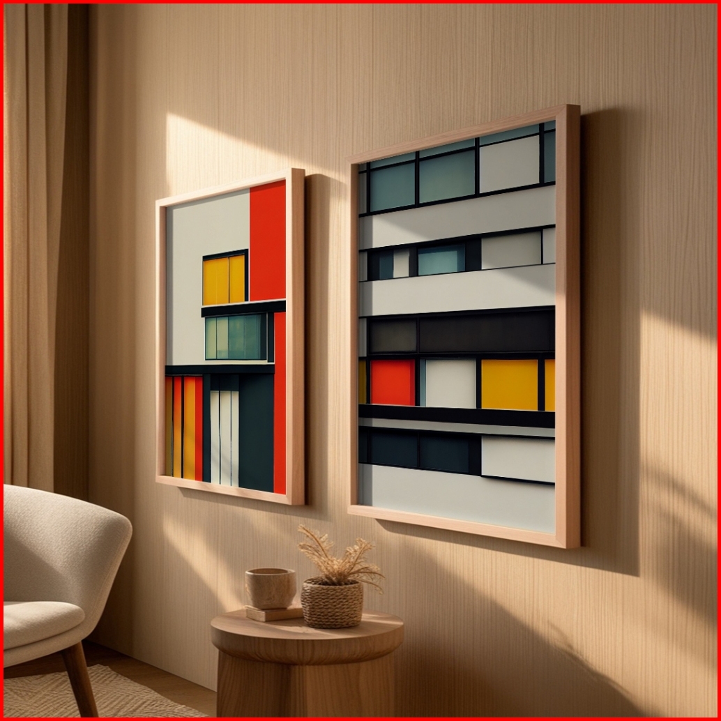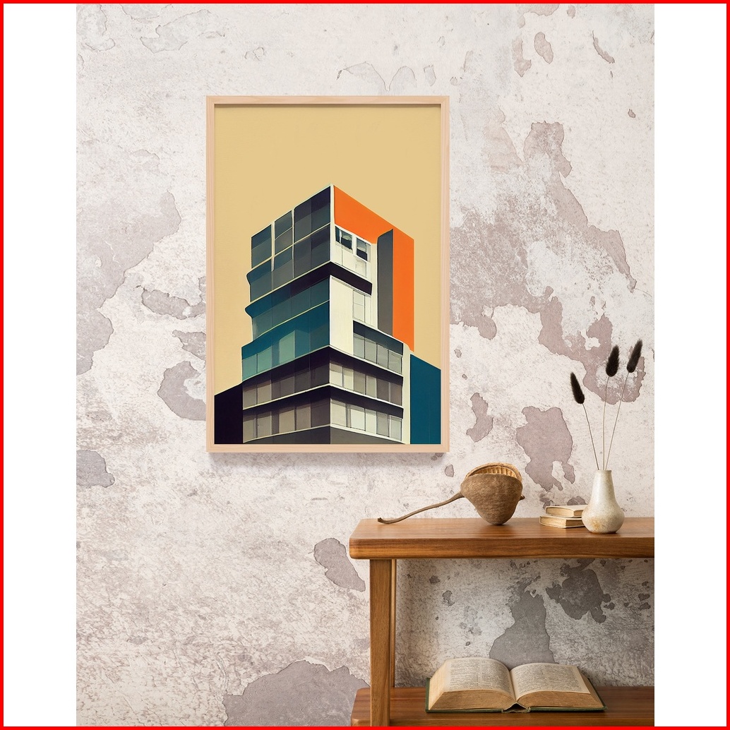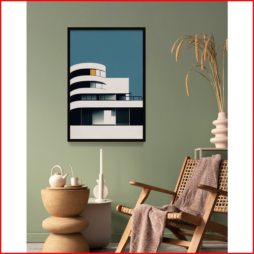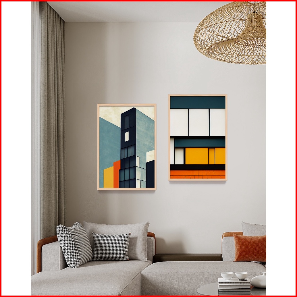 Lukisan Print Tema Bauhaus Gedung Simple Minimalis Poster Wall Art