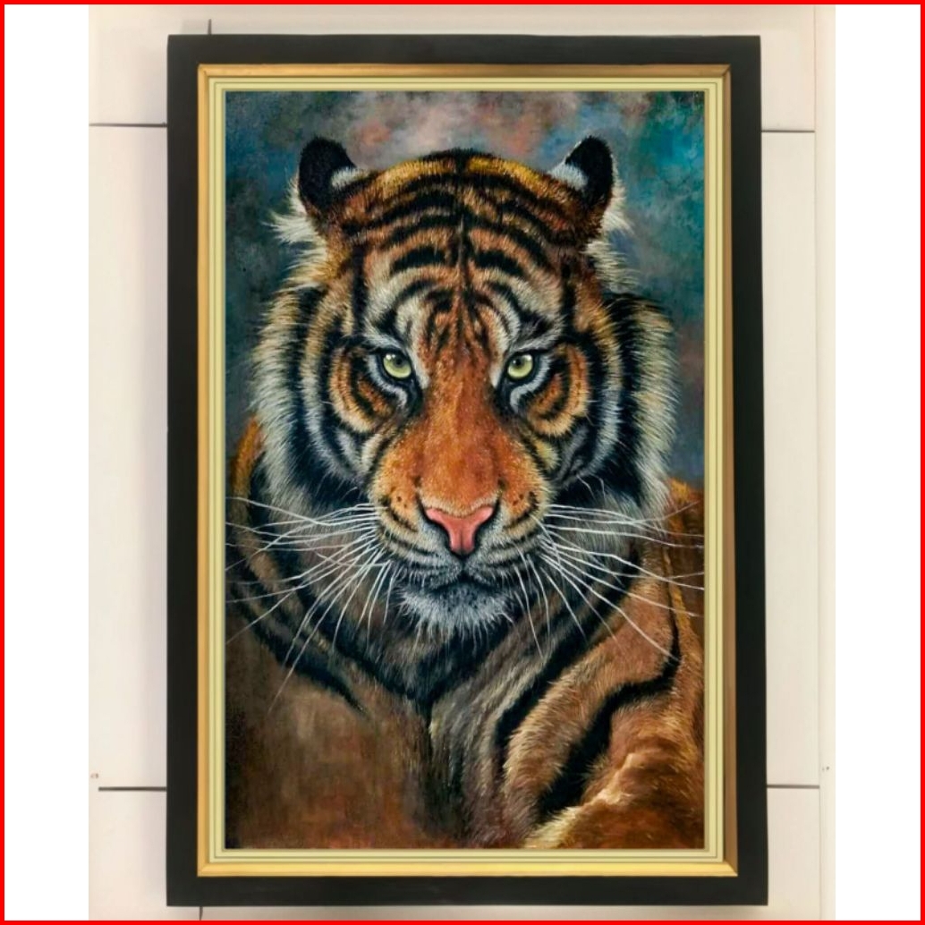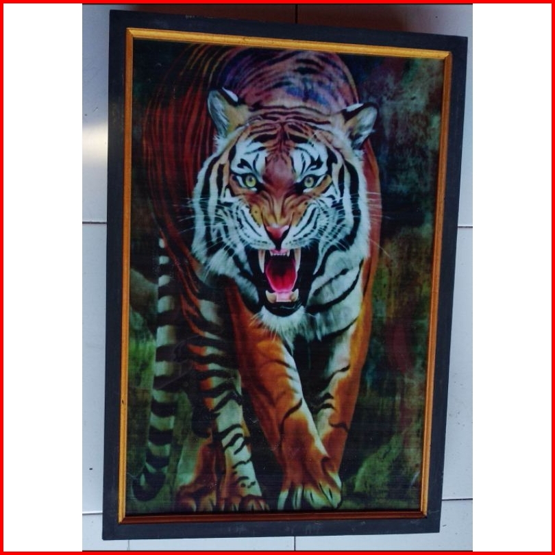 Hiasan Dinding Lukisan Cetak Harimau Belang Plus Bingkai Ukuran 65 45