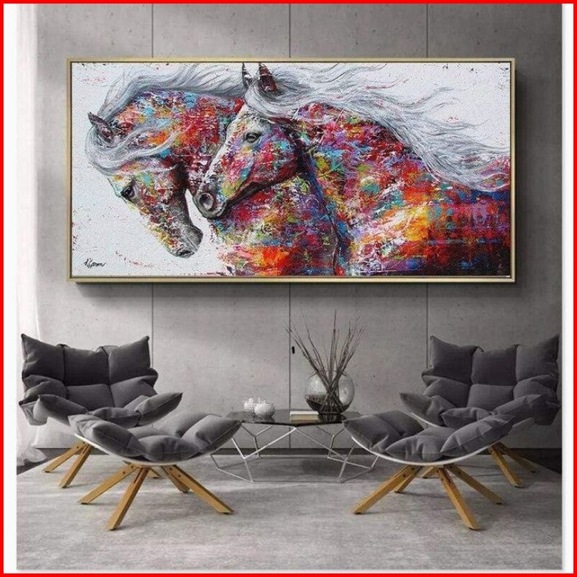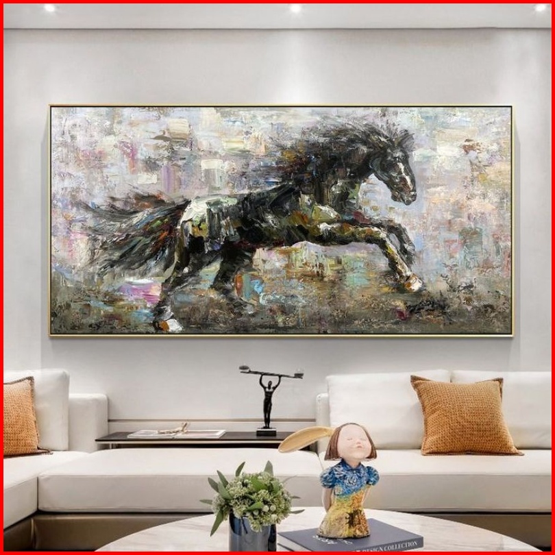 Lukisan Kuda Modern Art Karya Tangan Cat Timbul Tinggal Pajang