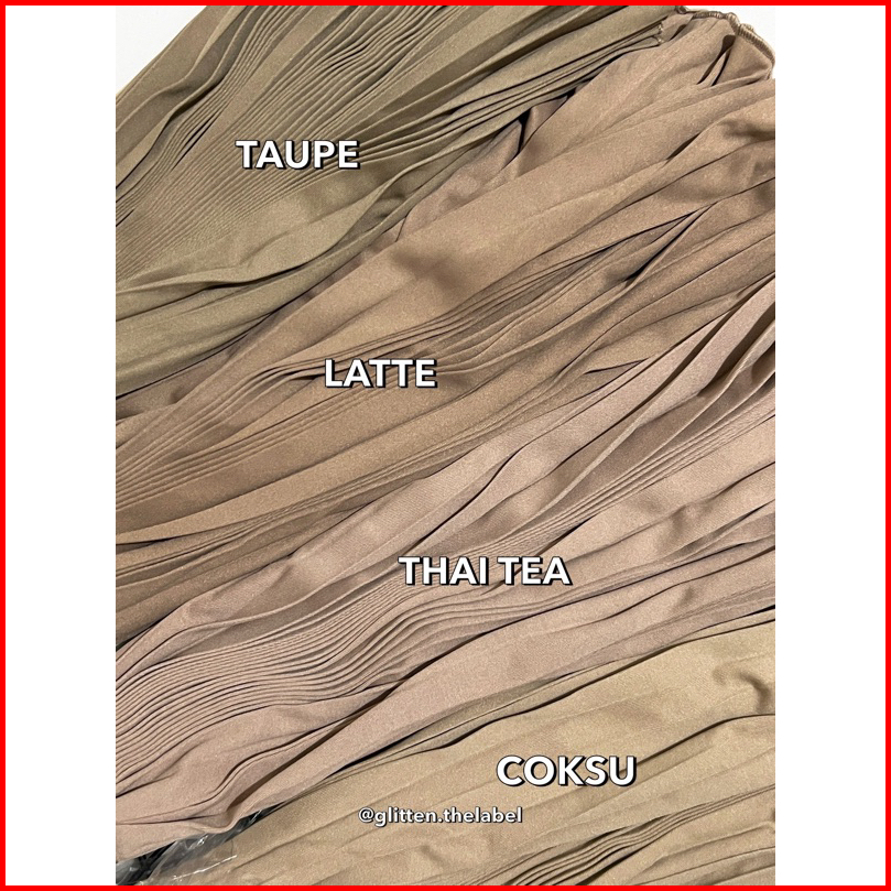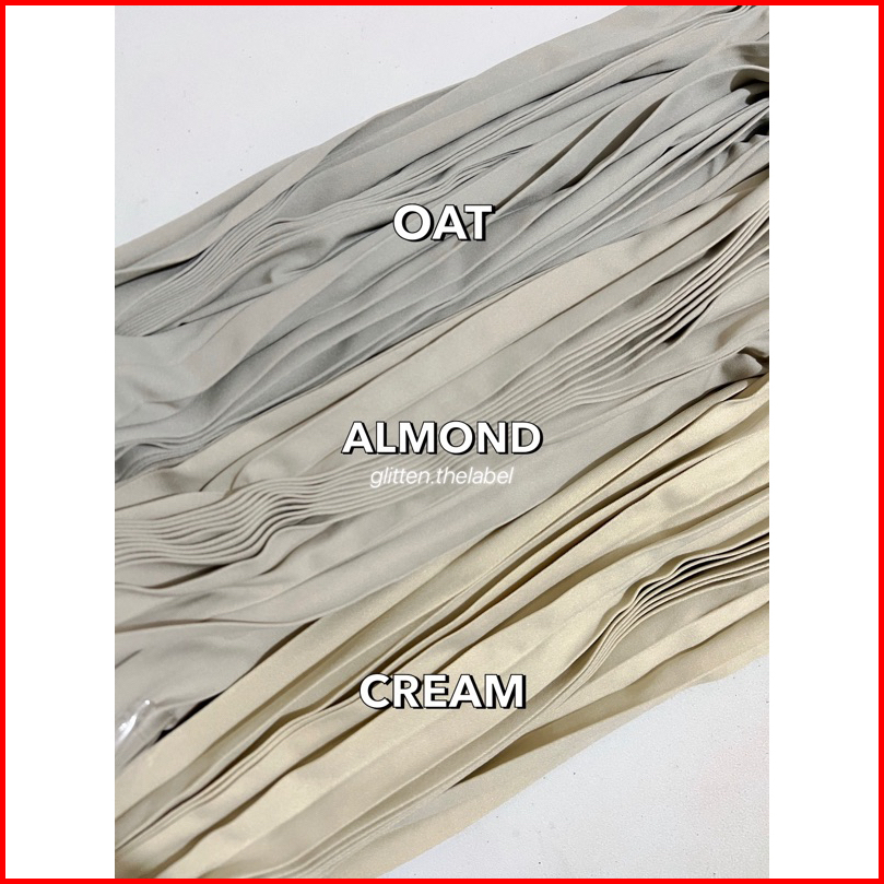 Dusty lilac, Royal blue, Milo, Golden, Hijau botol, Abu tua, Silver, Cream, Khaki, Sage, Denim, Broken White, Magenta, Hitam, Mustard, Stone, Emerald green, Sky Blue, Mint, Lemon, Salmon, Fanta, Baby pink, Sunkist, Taupe, Benhur, Abu muda, Ungu Anggur, Olive, Almond, Latte, Bata, Hijau tua, Army, Baby Blue, Navy, Maroon, Hijau Turq, Biru Turq, Thai Tea, Mocca, Pramuka, Coksu, Burgundy, Grey, Cinnamon, Ungu Pastel, Merah hati, Oat, Violet, Smoke, Dusty ungu, Ash grey, Hijau lumut, Lilac, Putih, Biscuit