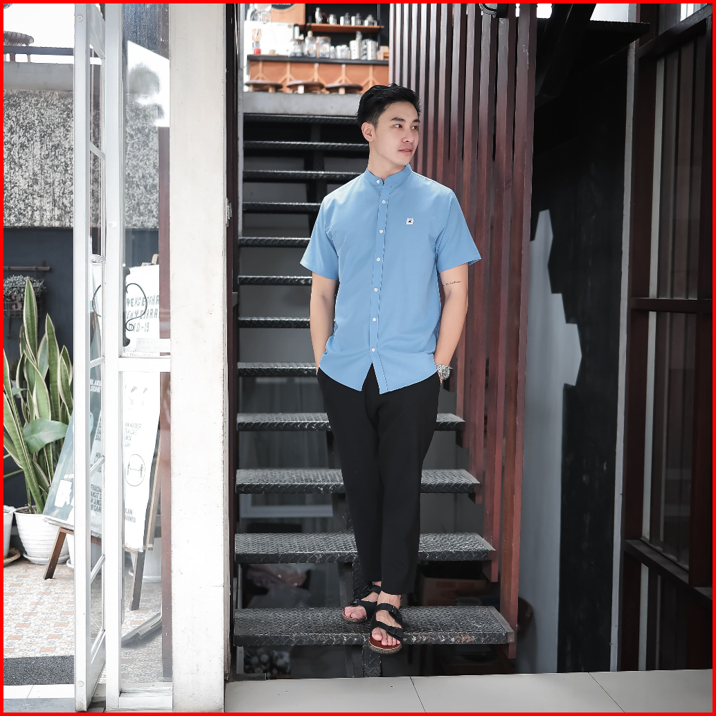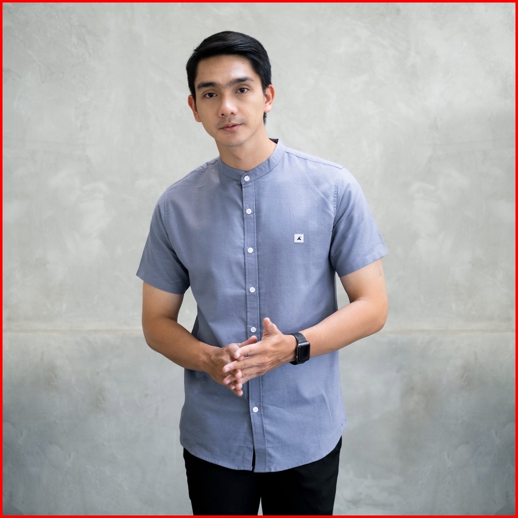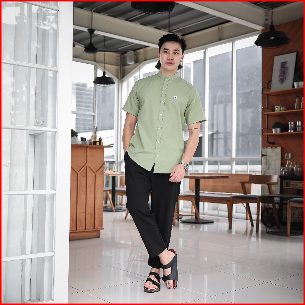 Ancstr Kemeja Pria Shanghai Polos - Linen Lengan Pendek New