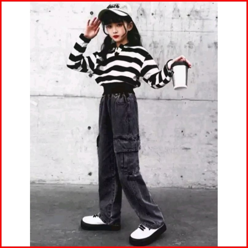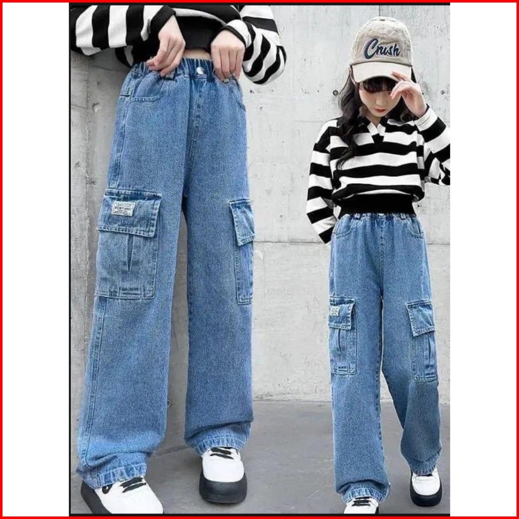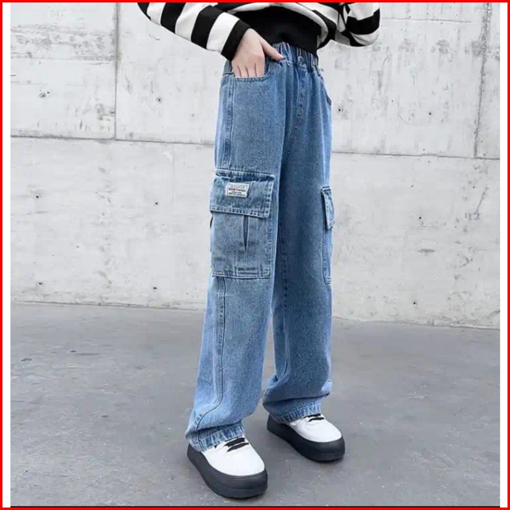 Celana Jeans Cargo Anak Perempuan Quality Premium Celana Kulot Jeans Cargo Wanita Kekinian