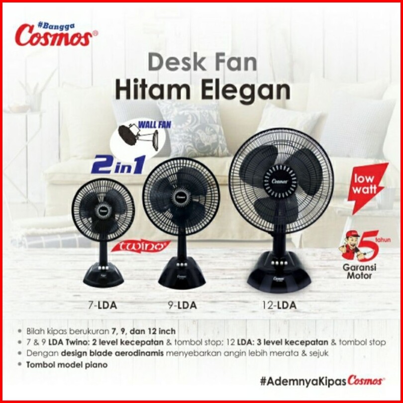 Kipas Angin Meja Cosmos Twino 9 Lda Dna 2 In 1 Desk And Wall Fan Super Spread Piano Model Switch