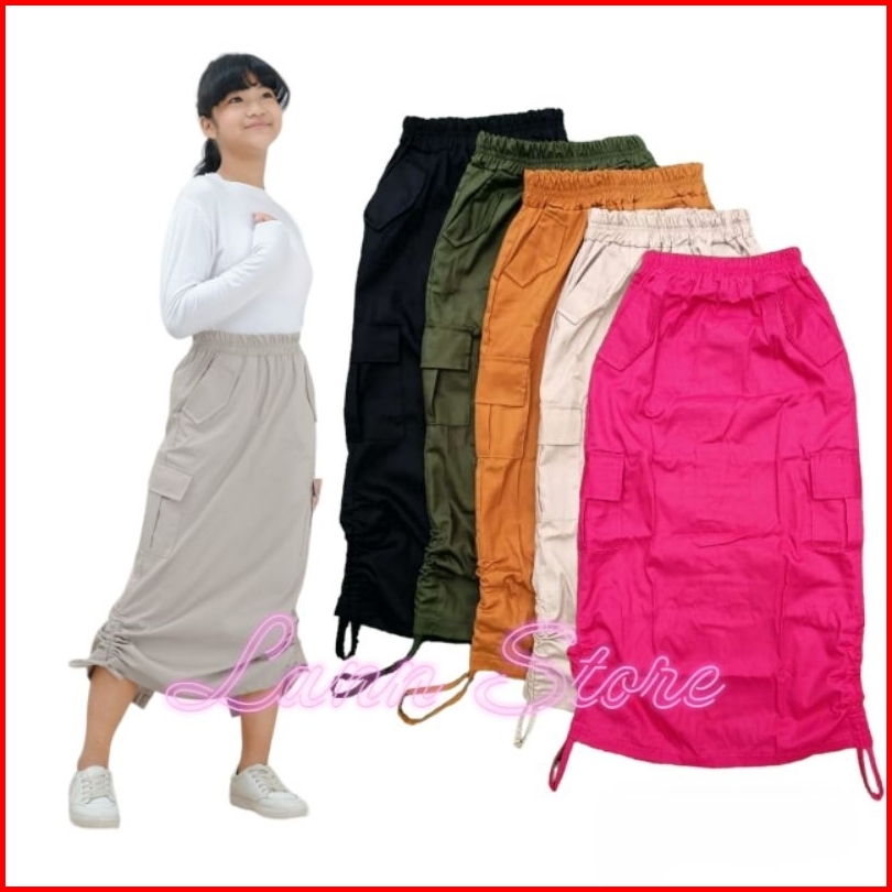 Rok Cargo Anak Perempuan Panjang 1 - 13 Tahun Bahan Katun Drill
