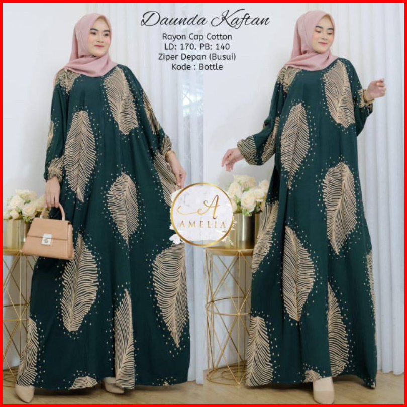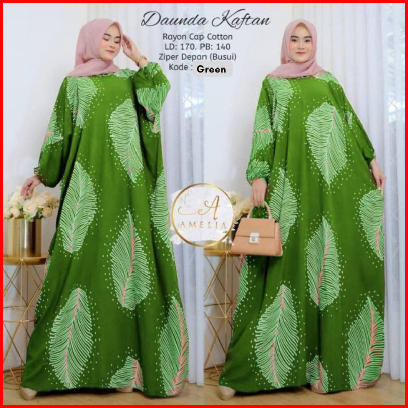 Terbaru Gamis Kaftan Daunda Bahan Rayon Grade Adem Halus Busui Frendly