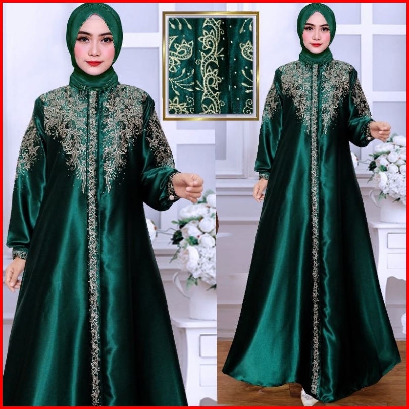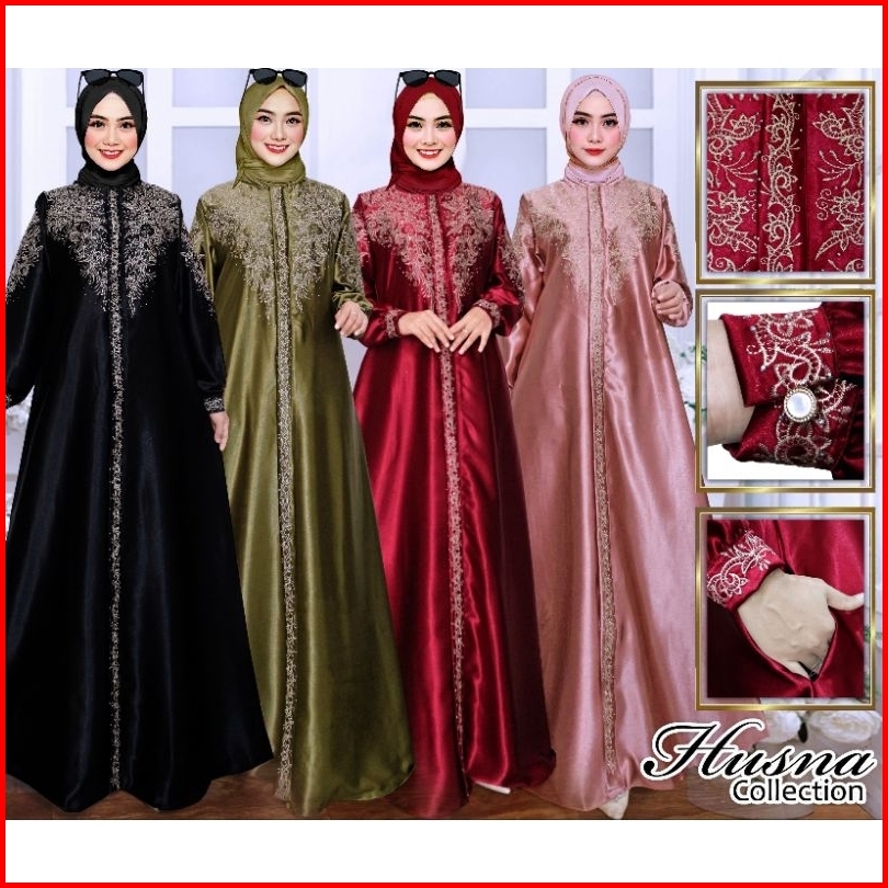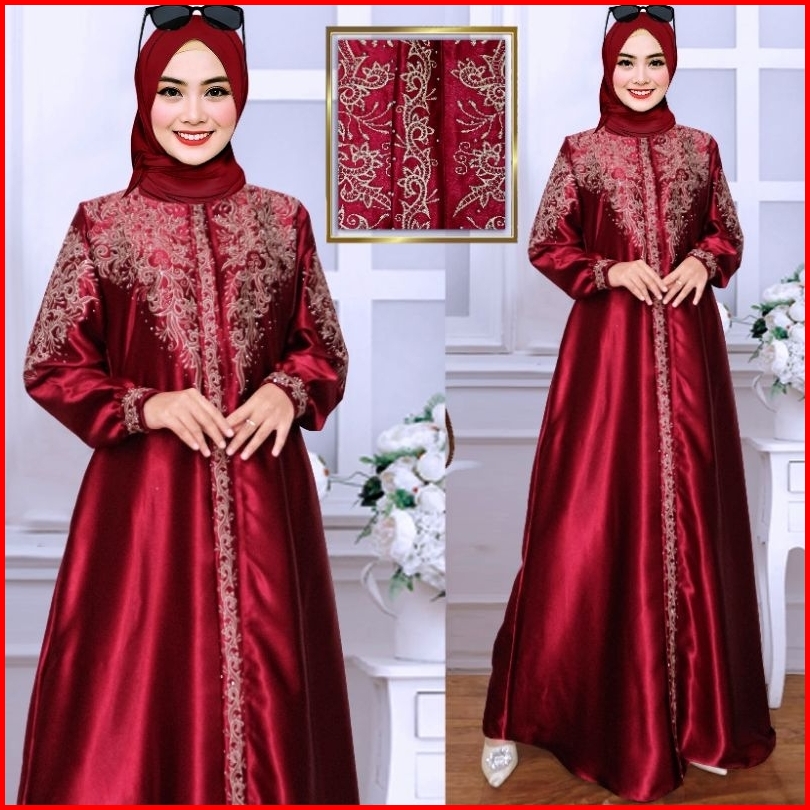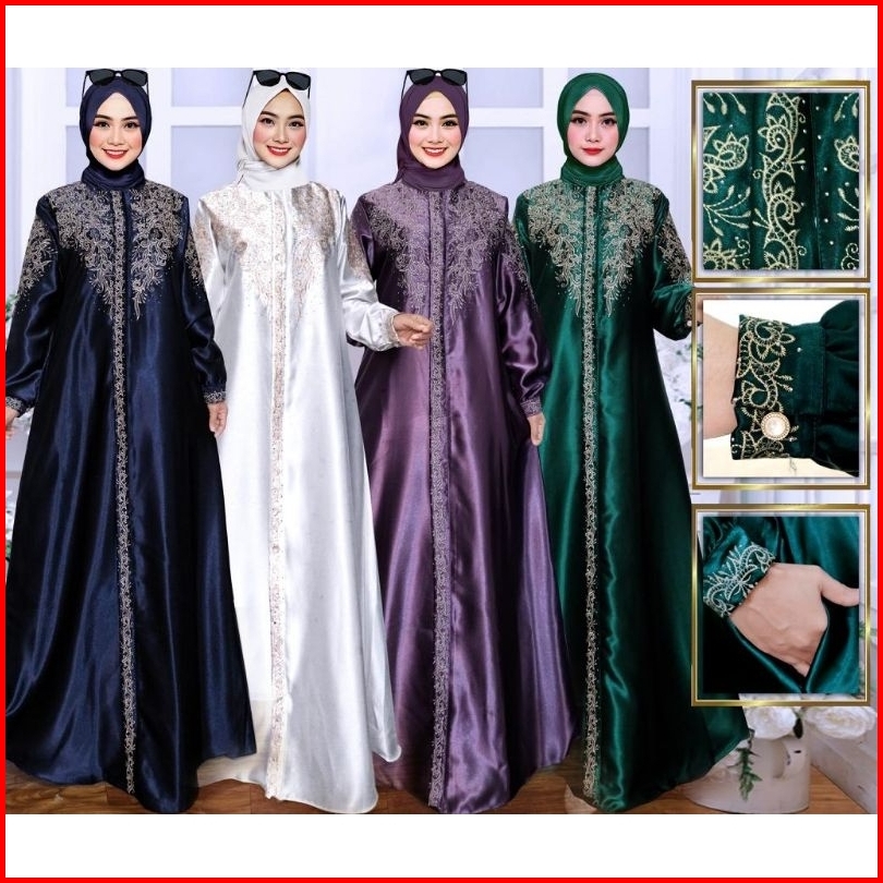 Gamis Kristal Original Bordir - Gamis Wanita Muslimah - Gamis Bordir - Semi Sutra - Gamis Silk Premium - Seragam Pesta P