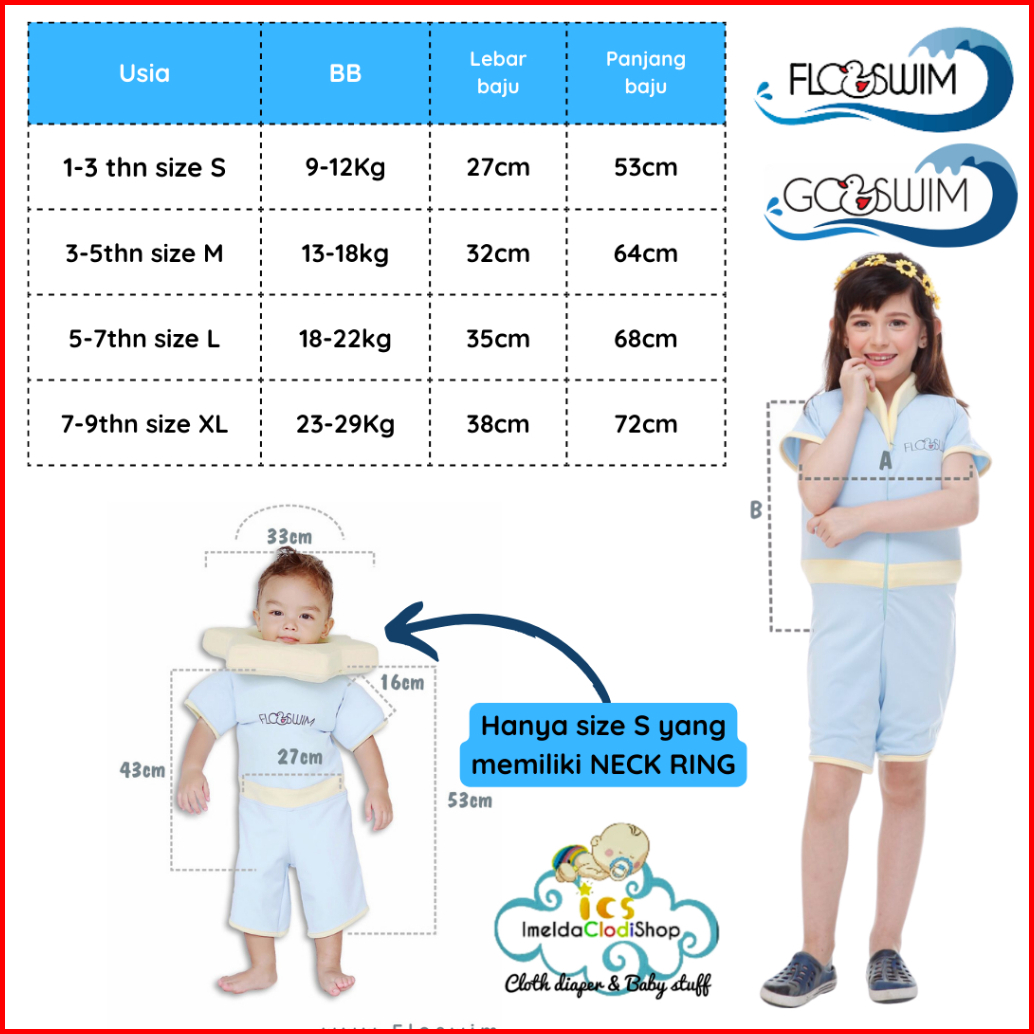 Floswim Goswim Baju Renang Mengapung Anak Cuddle Me Usia 1 2 3 4 5 6 7 8 9 Tahun Size S M L Xl