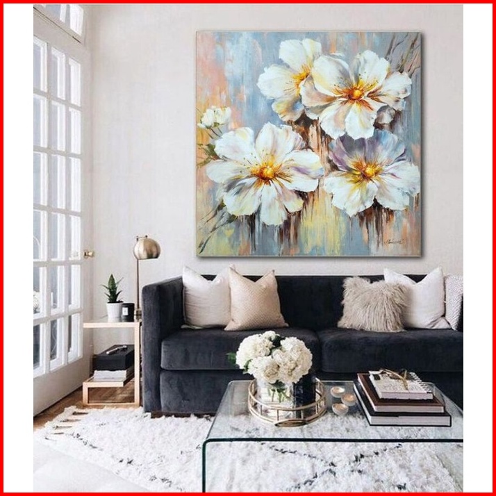 Hiasan Dinding Lukisan Bunga Modern Room Minimalis Karya Tangan Anak Bangsa