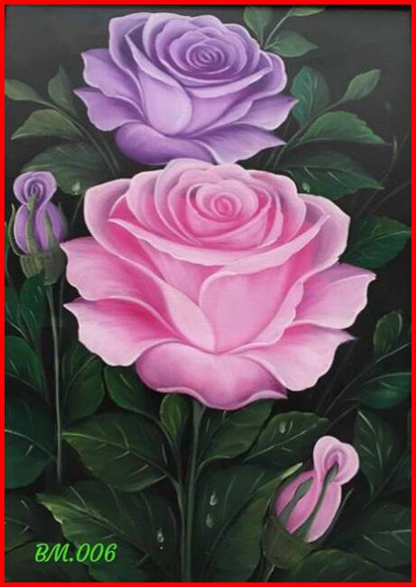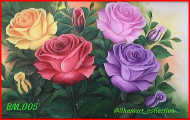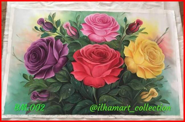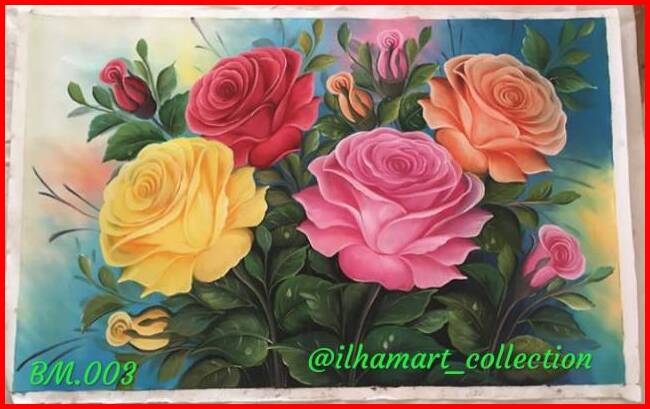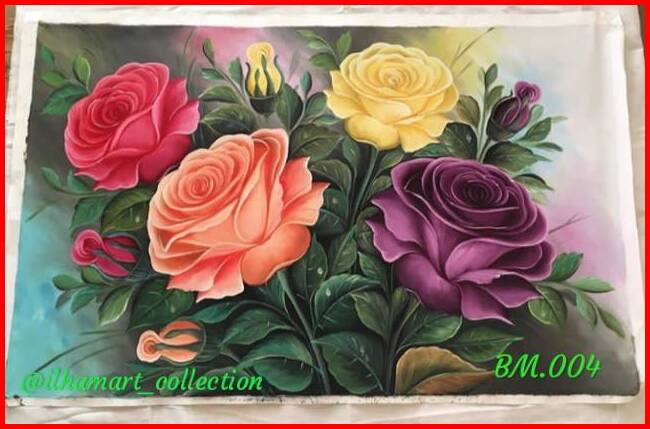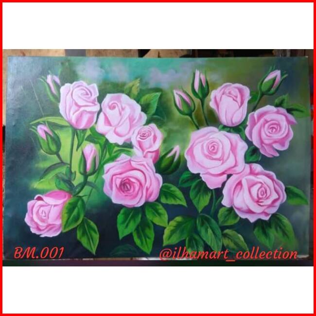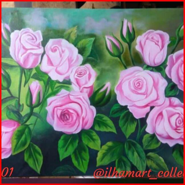 Lukisan Natur Bunga Mawar Asli Buatan Tangan Bukan Cetak Ukuran 135x85 120x60 90x60