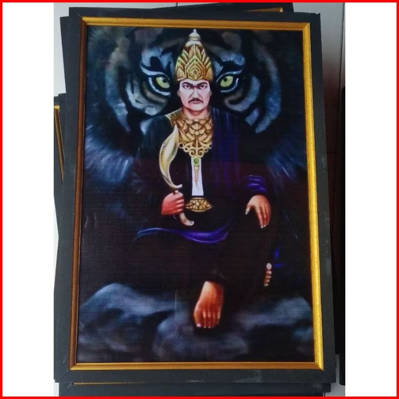 Hiasan Dinding Lukisan Cetak Prabu Siliwangi Dan Kujang Plus Bingkai Ukuran 65 45