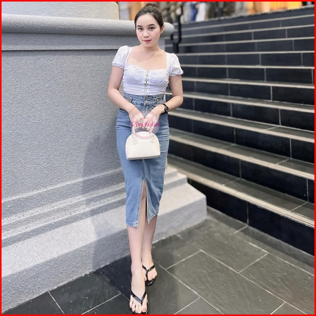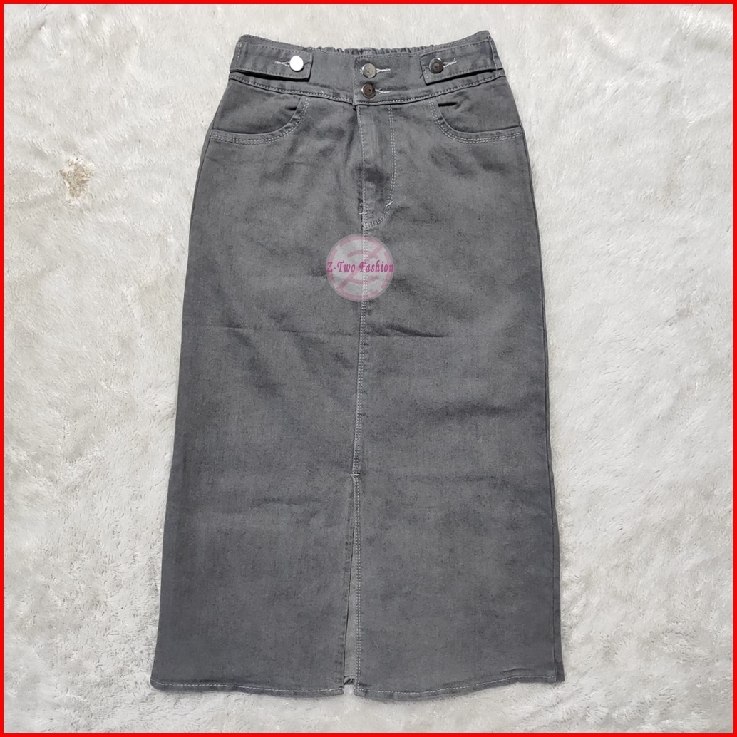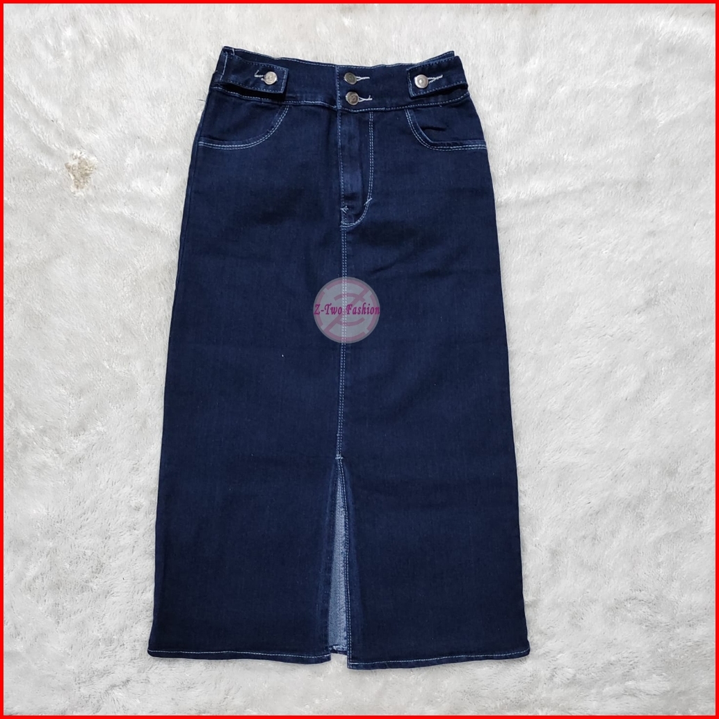 Z-two Fashion Highwaist Rok Jeans Melar Panjang 7 9 Belah Depan Doubel Button Seventyn Skirt