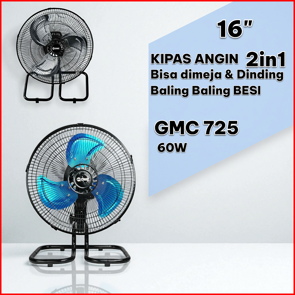 Kipas Angin 16 Inch Desk Fan Tornado Gmc 725 Terbaru 2in1 60w Swing Material Besi 2in1