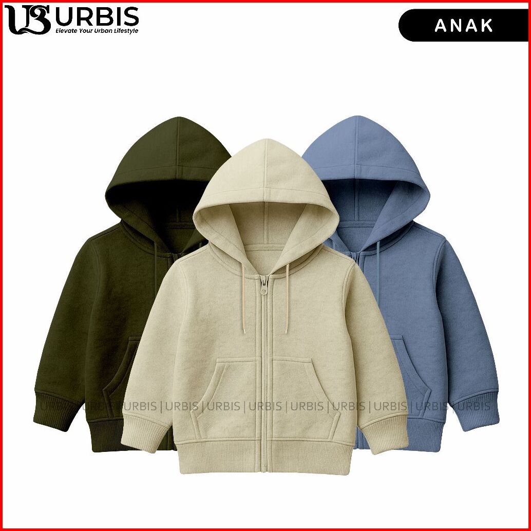 Urbis Jaket Zipper Polos Anak Laki-laki Perempuan Usia 3-13 Tahun Fleece Tebal Premium